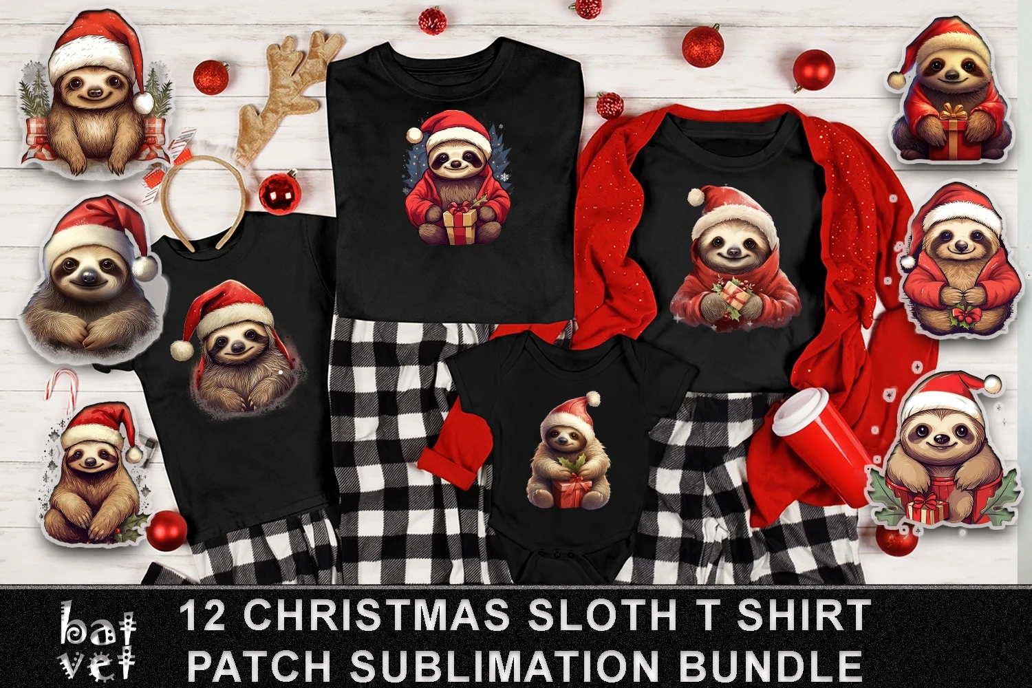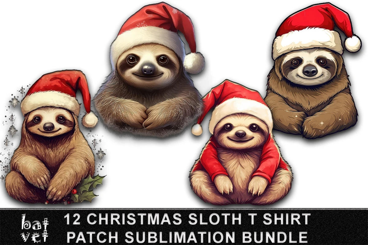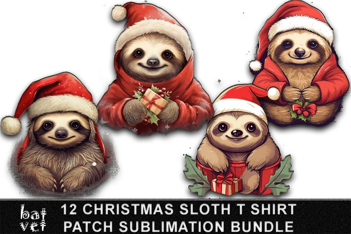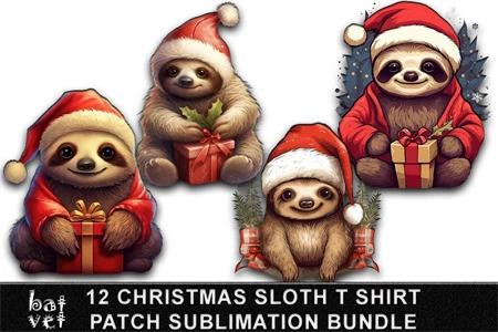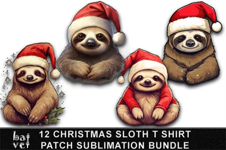 12 Christmas Sloth Patch Bundle / Xmas Sloth T Shirt Design