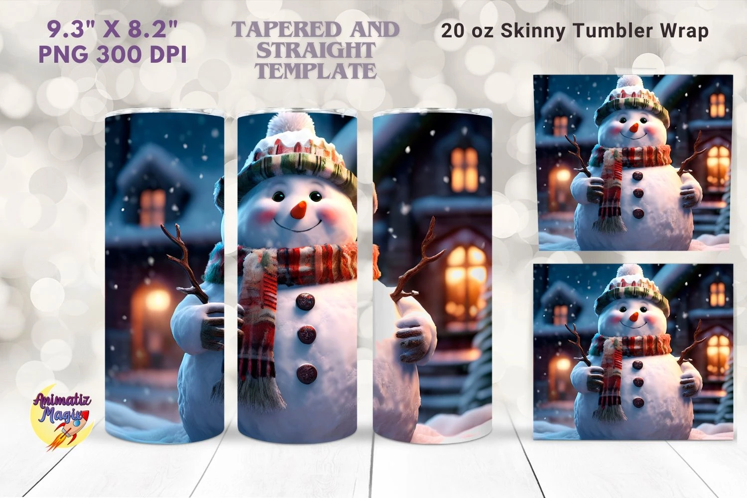 Christmas Snowman 20 oz Tumbler Wrap Christmas Design
