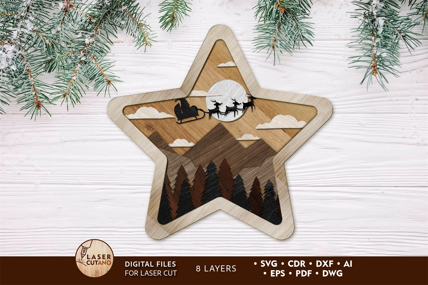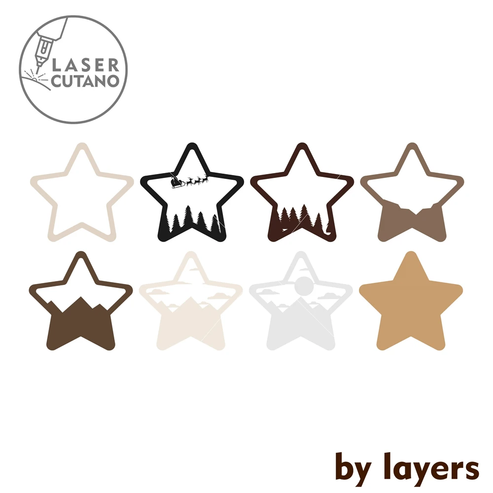 CHRISTMAS STAR Digital multilayer layout files are specially prepared for the laser cut, CNC router machine and other cutting machines.