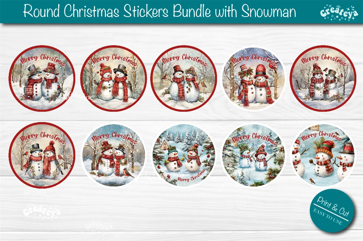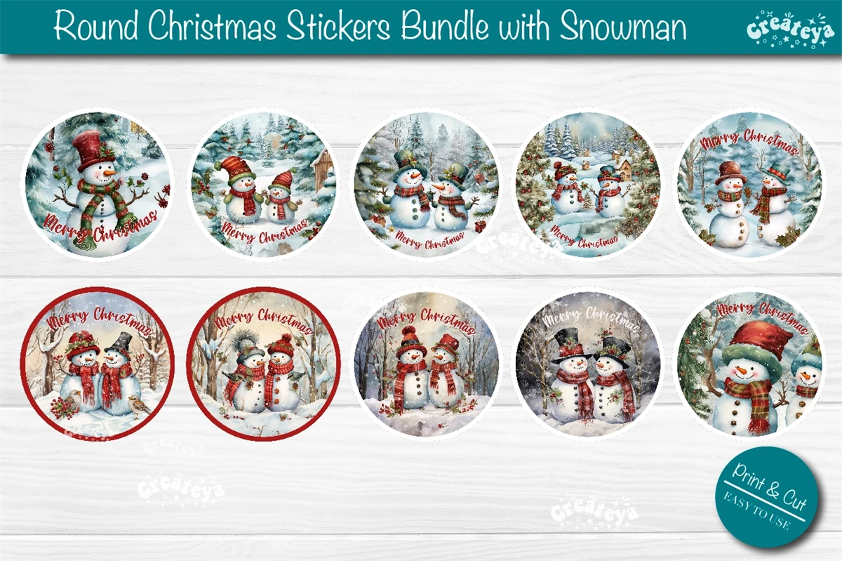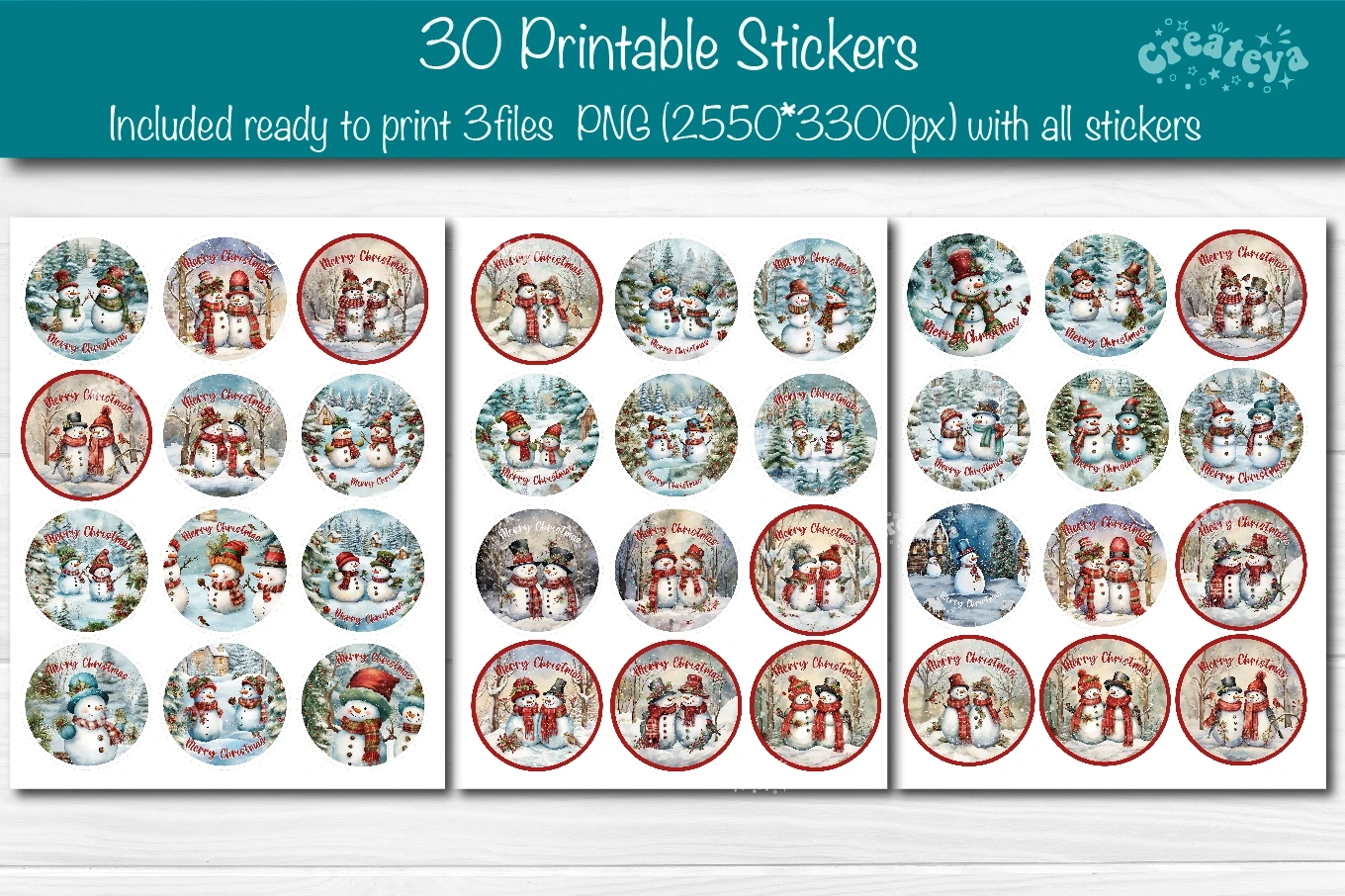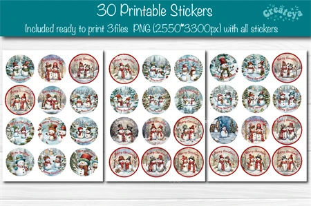 Christmas stickers Bundle contains 30 designs with a cute Snowman design. Cute stickers Design.