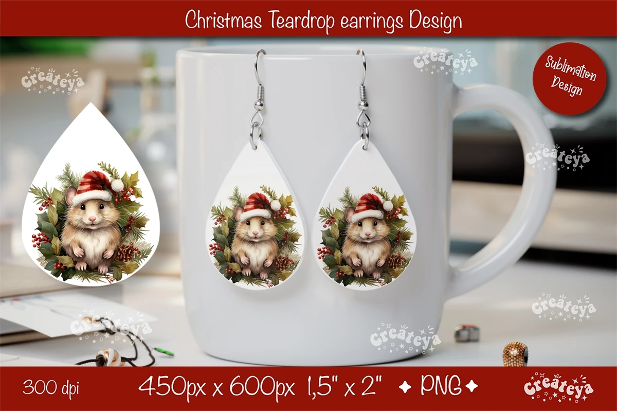 Christmas teardrop earrings sublimation design with watercolor Baby animals. Express your individuality, elevate your mood, and spread joy with these earrings. They also make a perfect gift for any occasion. Embrace your unique style and let the Christmas Earrings be your artistic expression!