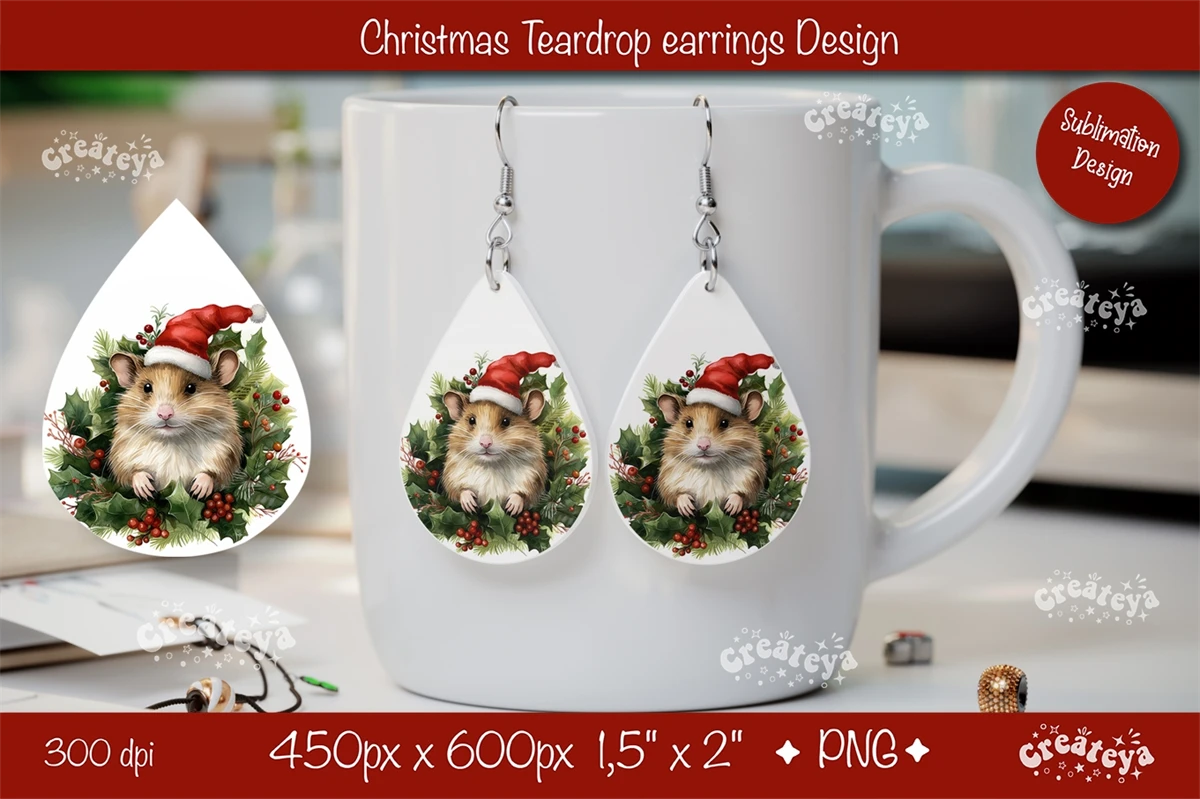 Christmas teardrop earrings sublimation design with watercolor Baby animals. Express your individuality, elevate your mood, and spread joy with these earrings. They also make a perfect gift for any occasion. Embrace your unique style and let the Christmas Earrings be your artistic expression!