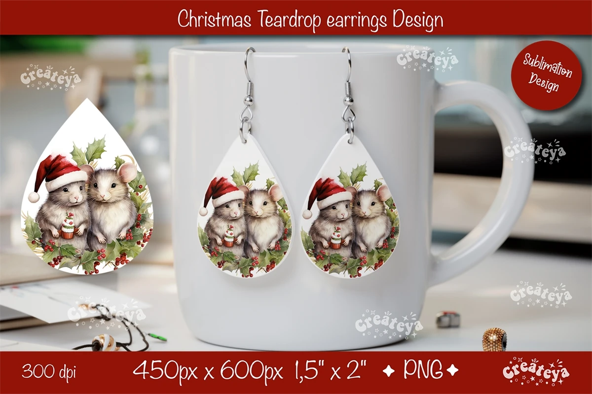 Christmas teardrop earrings sublimation design with watercolor Baby animals. Express your individuality, elevate your mood, and spread joy with these earrings. They also make a perfect gift for any occasion. Embrace your unique style and let the Christmas Earrings be your artistic expression!