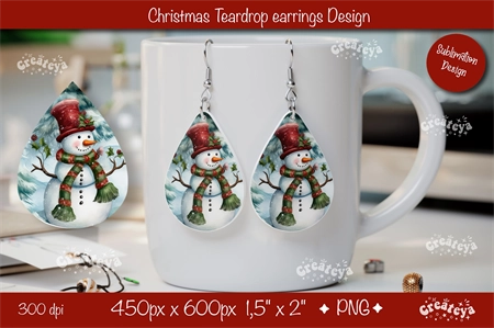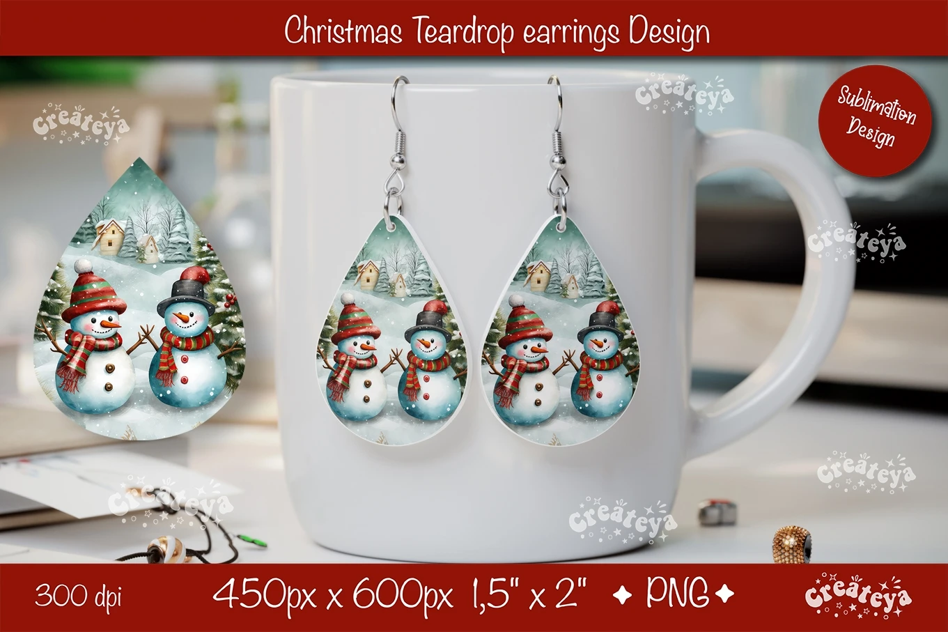 Christmas teardrop earrings sublimation design with watercolor Snowman. Express your individuality, elevate your mood, and spread joy with these earrings. They also make a perfect gift for any occasion. Embrace your unique style and let the Christmas Earrings be your artistic expression!