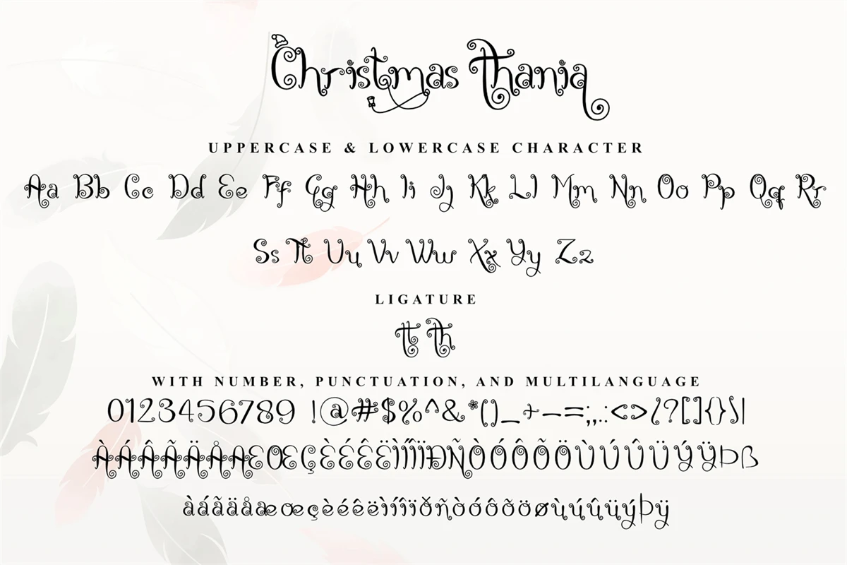 Christmas Thania is a friendly, fresh, rich, and elegant handwritten font. It is ideal for holiday-themed greeting cards and for any crafting project that requires a romantic touch.