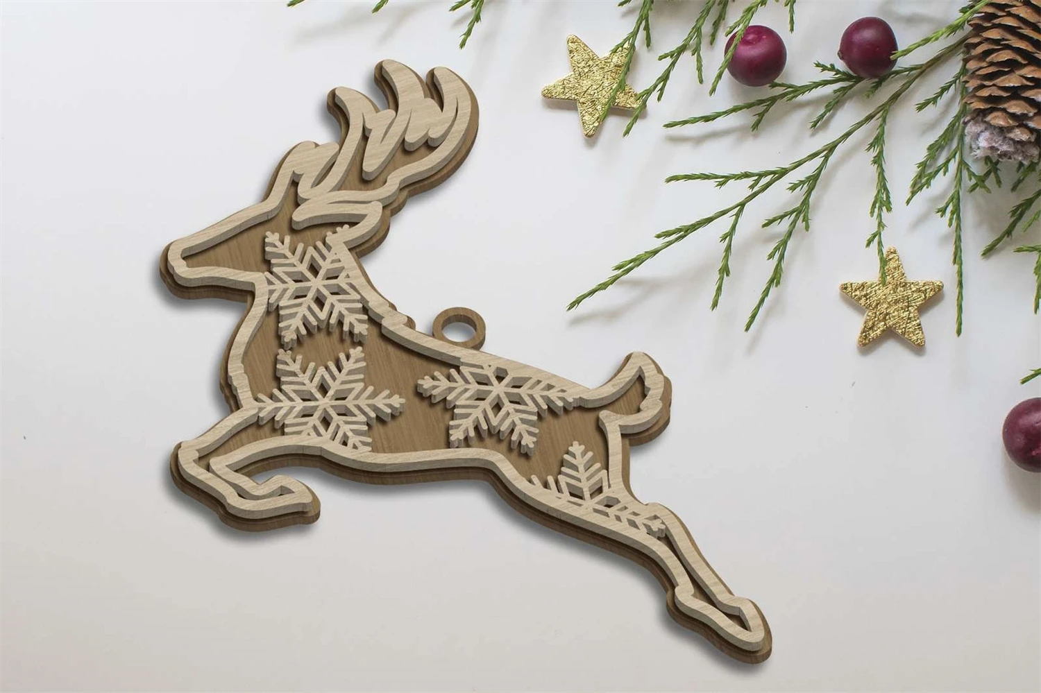 CHRISTMAS ORNAMENTS Digital multilayer layout files are specially prepared for the laser cut, CNC router machine and other cutting machines. Layered Christmas Ornament is festive and eye-catching decorations that add a touch of elegance and charm to your holiday tree or home decor. This ornament is carefully crafted with multiple layers of materials, each contributing to the overall design and visual appeal.