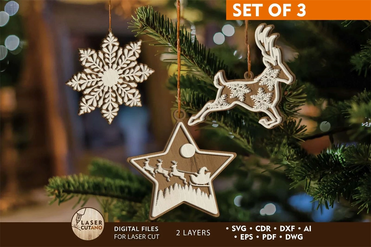 CHRISTMAS ORNAMENTS Laser Cut File Svg New Year Laser Cut Designs. It is multilayer layout is an creative design for your ideas!