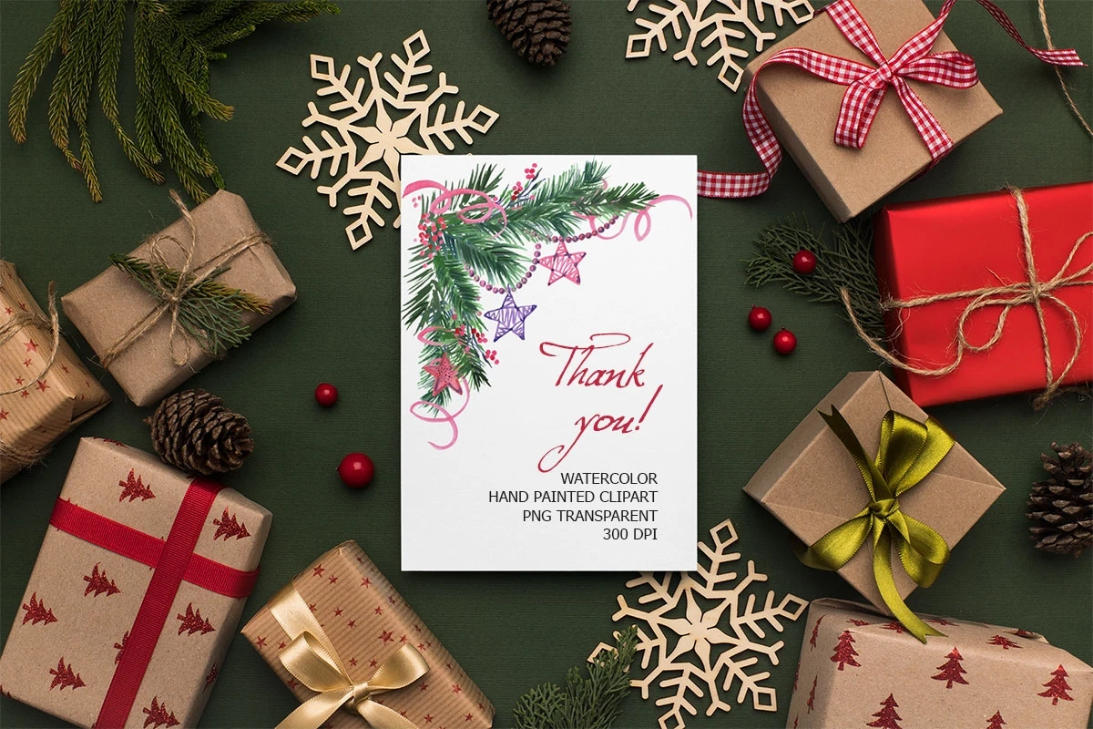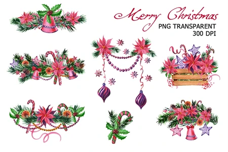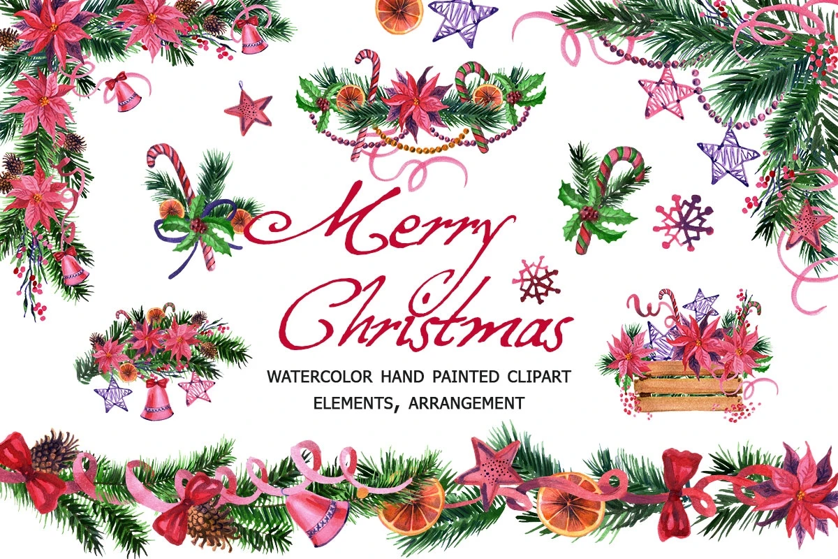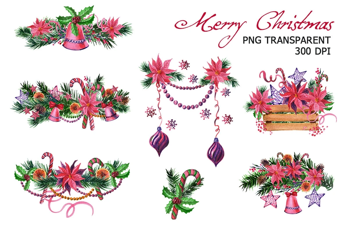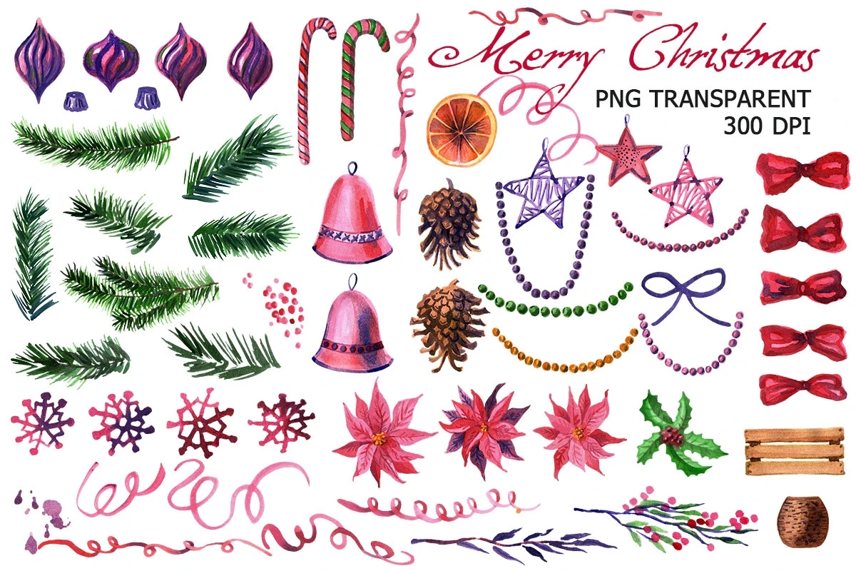 Watercolor hand painted Christmas clipart: