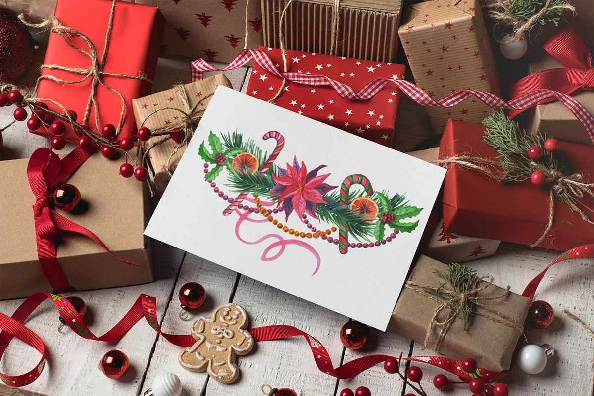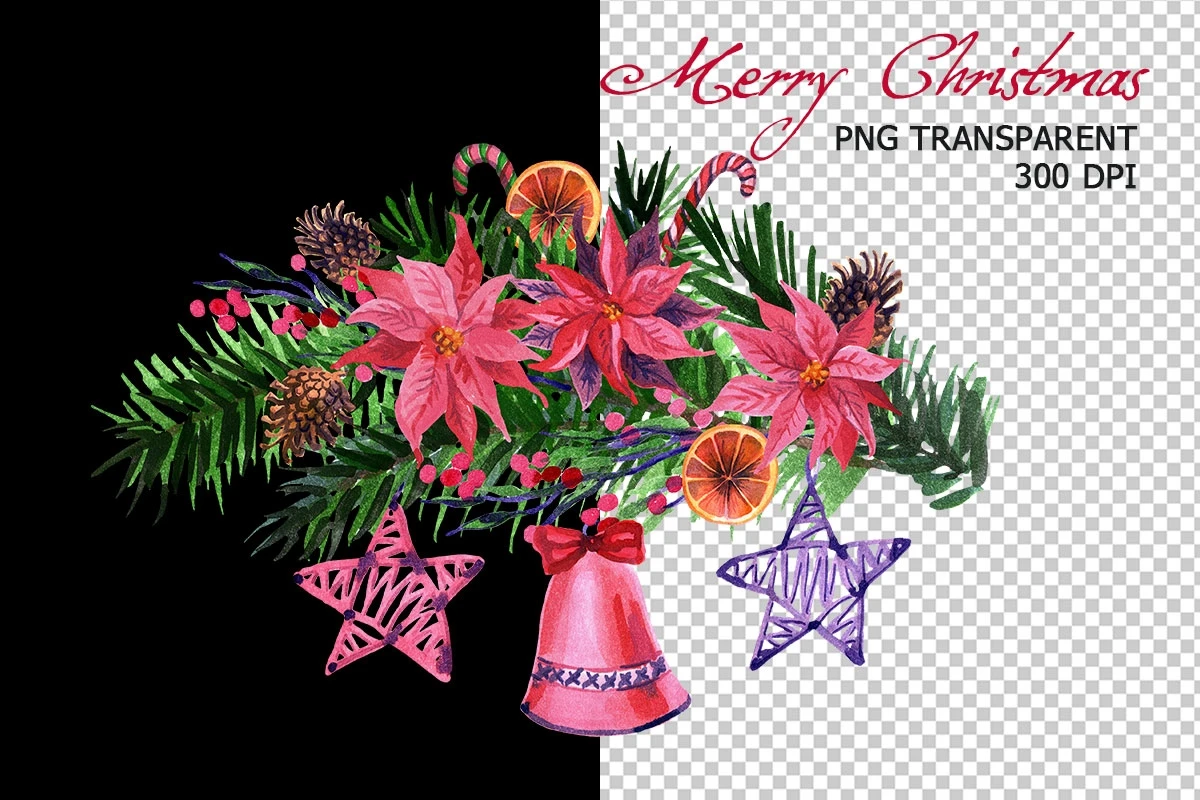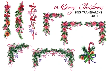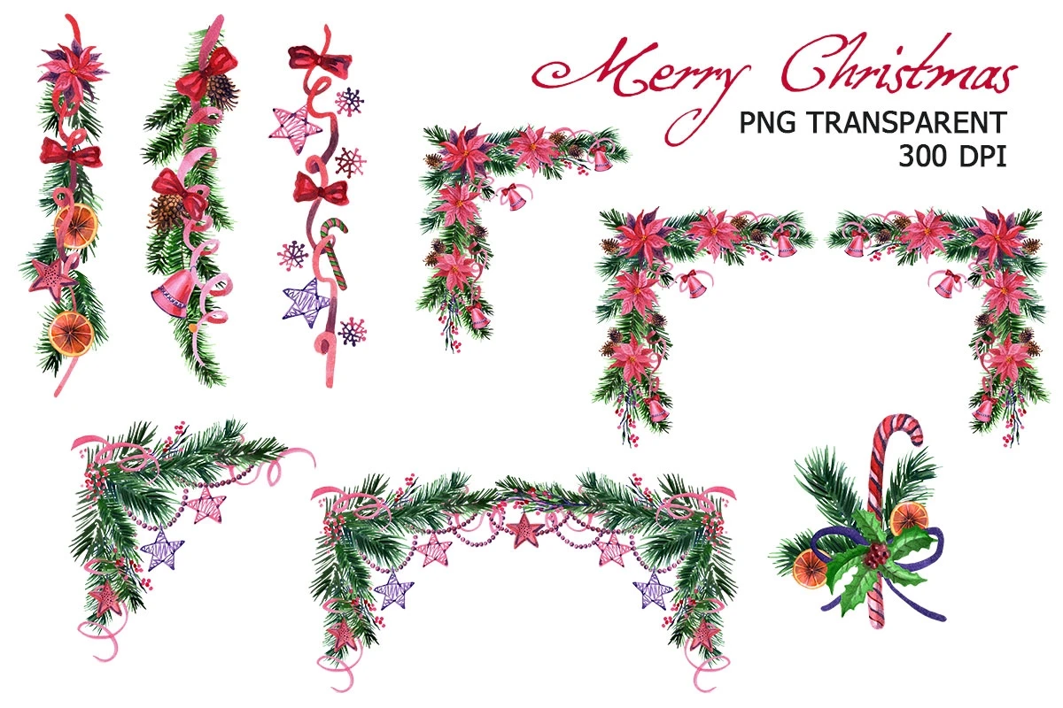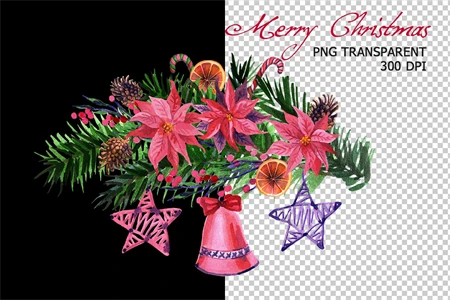 Watercolor hand painted Christmas clipart: