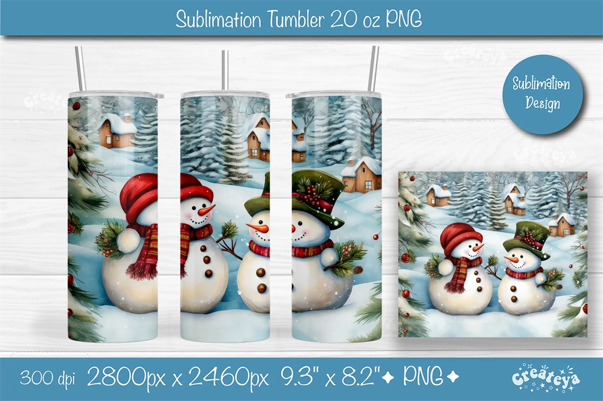 Xmas Tumbler, Christmas Tumbler wrap 20 Oz sublimation design PNG. This 20 oz skinny Christmas tumbler sublimation design with an eye-catching watercolor Snowman.