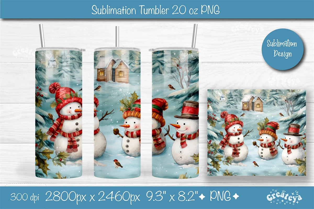 Xmas Tumbler, Christmas Tumbler wrap 20 Oz sublimation design PNG. This 20 oz skinny Christmas tumbler sublimation design with an eye-catching watercolor Snowman.