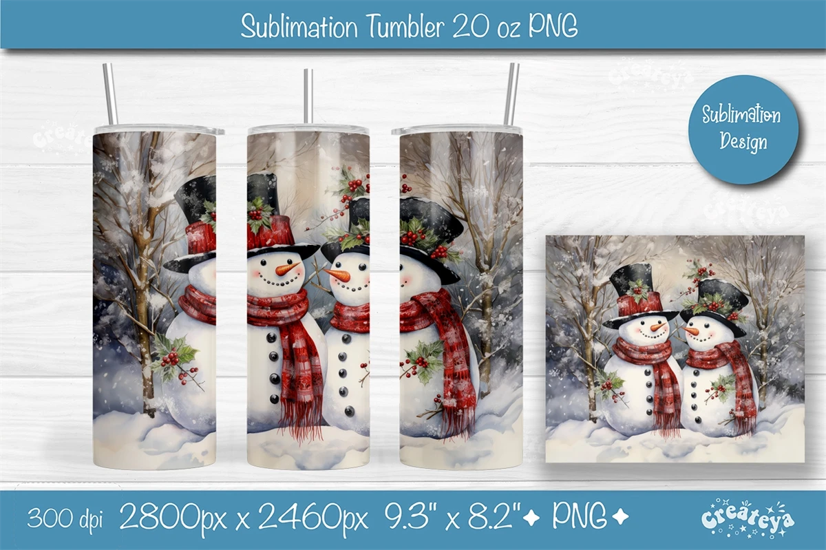 Xmas Tumbler, Christmas Tumbler wrap 20 Oz sublimation design PNG. This 20 oz skinny Christmas tumbler sublimation design with an eye-catching watercolor Snowman.