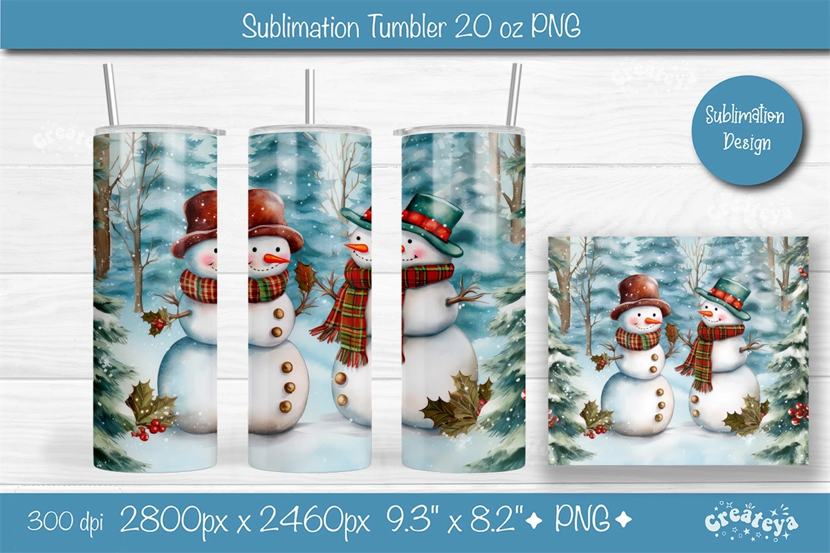 Xmas Tumbler, Christmas Tumbler wrap 20 Oz sublimation design PNG. This 20 oz skinny Christmas tumbler sublimation design with an eye-catching watercolor Snowman.