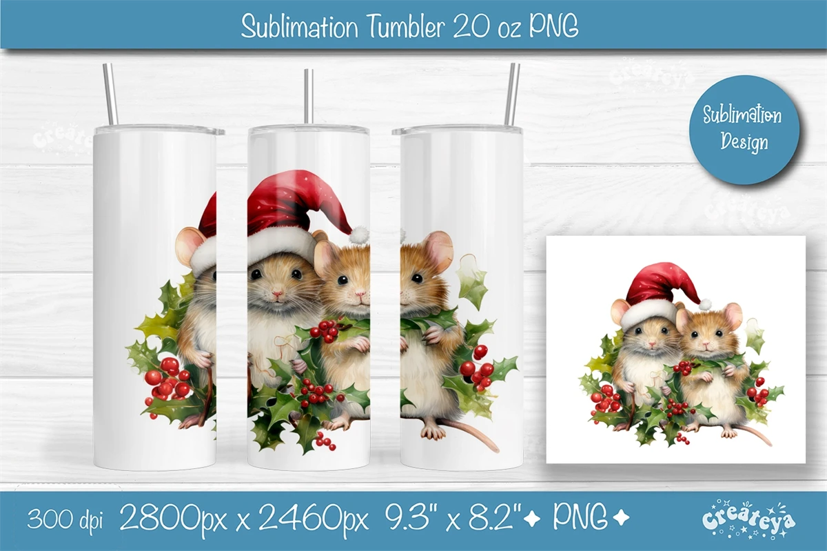 Xmas Tumbler, Christmas Tumbler wrap 20 Oz sublimation design PNG. This 20 oz skinny Christmas tumbler sublimation design with an eye-catching watercolor Baby Animals.