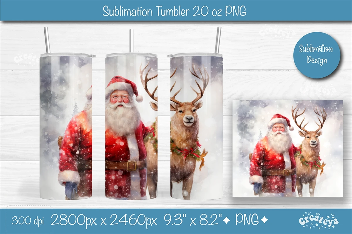 Xmas Tumbler, Christmas Tumbler wrap 20 Oz sublimation design PNG. This 20 oz skinny Christmas tumbler sublimation design with an eye-catching watercolor Santa.