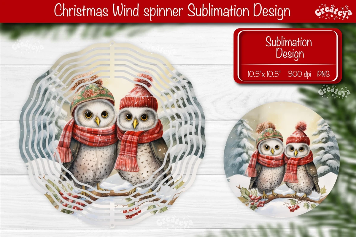 Round Christmas Wind Spinner with cute Christmas Owl PNG. These Christmas design of wind spinner bring a touch of snow-filled charm and a warm, fuzzy feeling to your home decor.