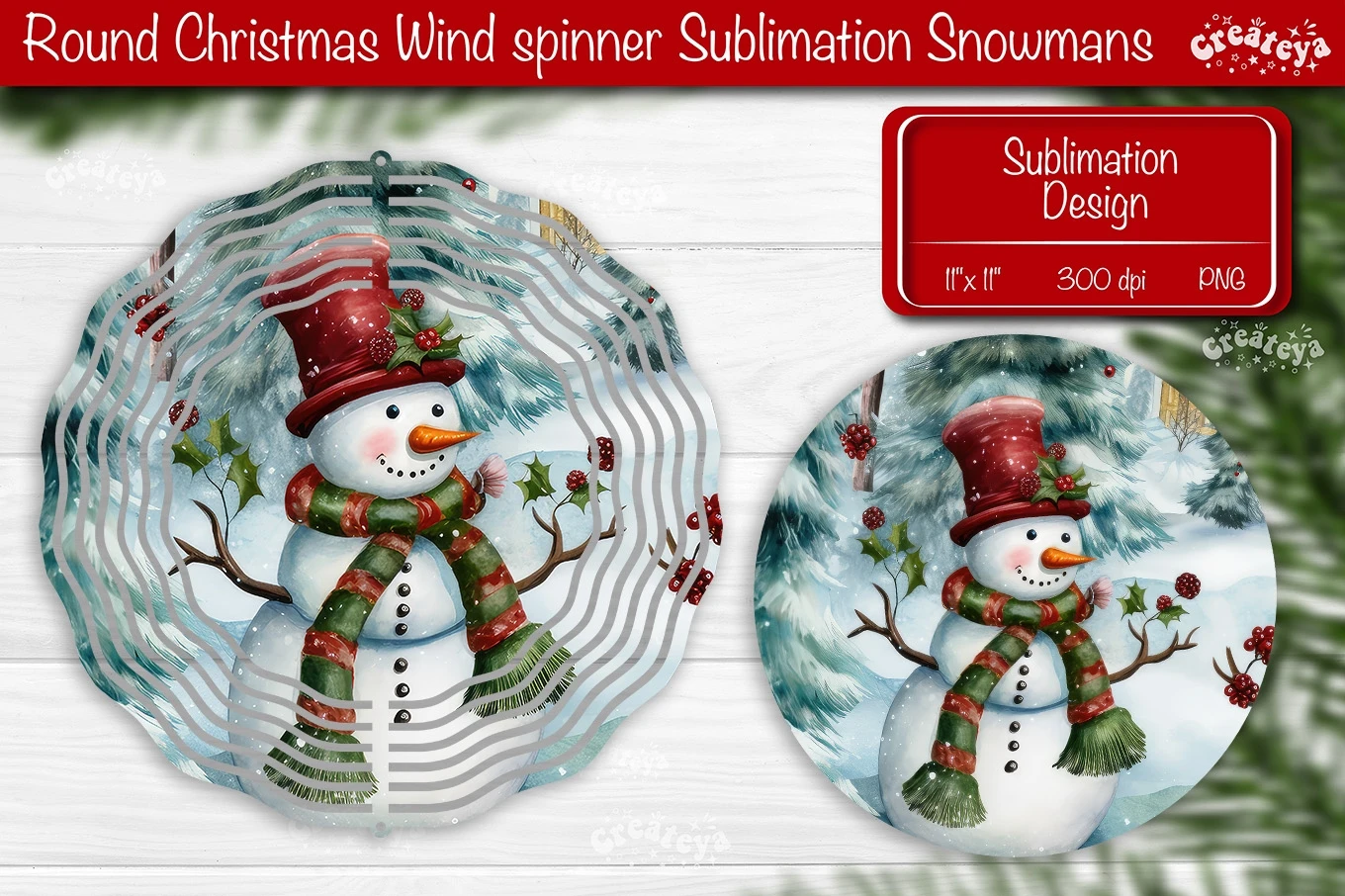 Round Christmas Wind Spinner design with a cute Snowman PNG. These Christmas dcor of wind spinners bring a touch of snow-filled charm and a warm, fuzzy feeling to your home decoration.