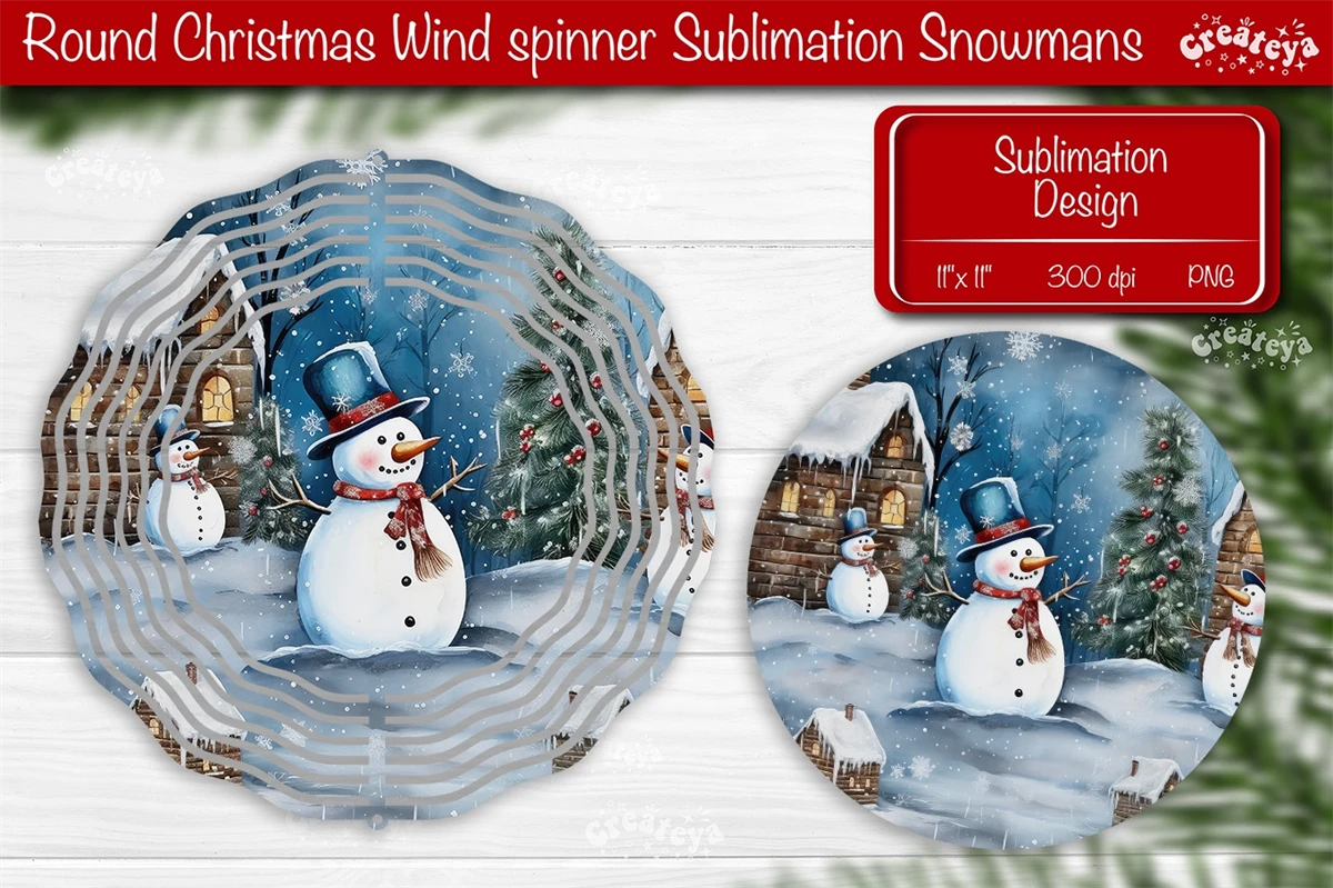 Round Christmas Wind Spinner design with a cute Snowman PNG. These Christmas dcor of wind spinners bring a touch of snow-filled charm and a warm, fuzzy feeling to your home decoration.
