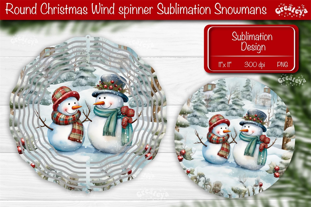 Round Christmas Wind Spinner design with a cute Snowman PNG. These Christmas dcor of wind spinners bring a touch of snow-filled charm and a warm, fuzzy feeling to your home decoration.
