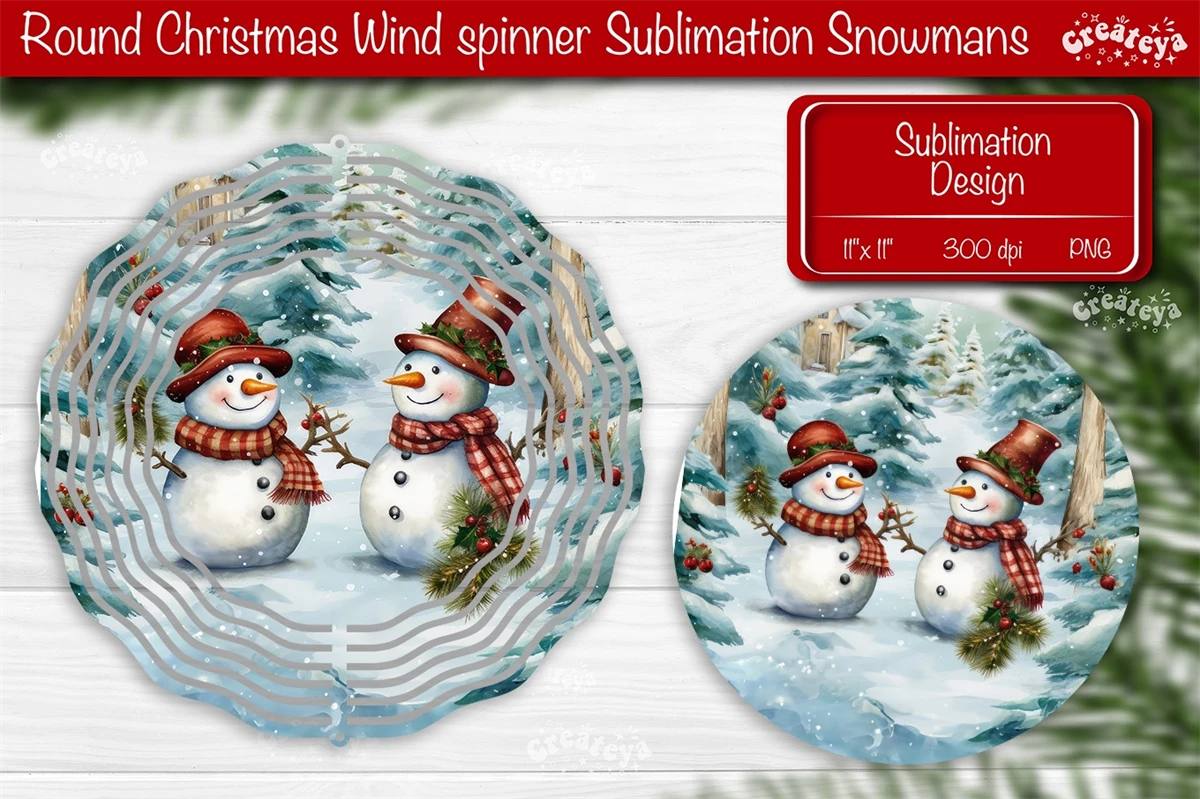 Round Christmas Wind Spinner design with a cute Snowman PNG. These Christmas dcor of wind spinners bring a touch of snow-filled charm and a warm, fuzzy feeling to your home decoration.