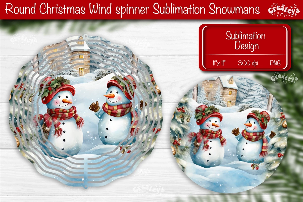 Round Christmas Wind Spinner design with a cute Snowman PNG. These Christmas dcor of wind spinners bring a touch of snow-filled charm and a warm, fuzzy feeling to your home decoration.
