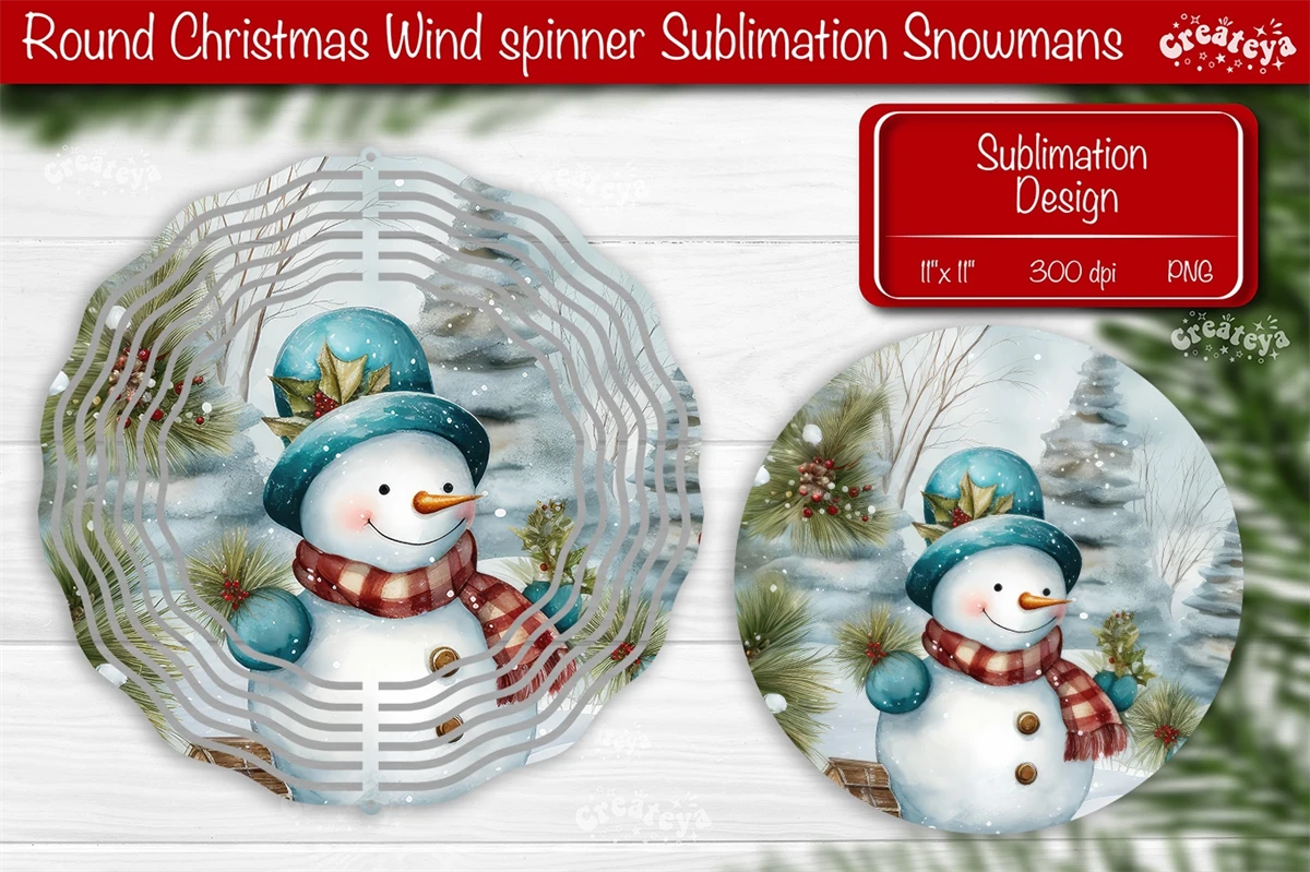 Round Christmas Wind Spinner design with a cute Snowman PNG. These Christmas dcor of wind spinners bring a touch of snow-filled charm and a warm, fuzzy feeling to your home decoration.