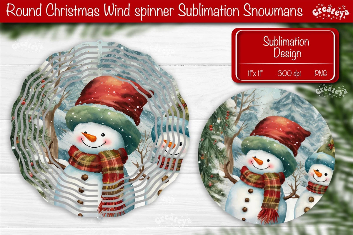 Round Christmas Wind Spinner design with a cute Snowman PNG. These Christmas dcor of wind spinners bring a touch of snow-filled charm and a warm, fuzzy feeling to your home decoration.