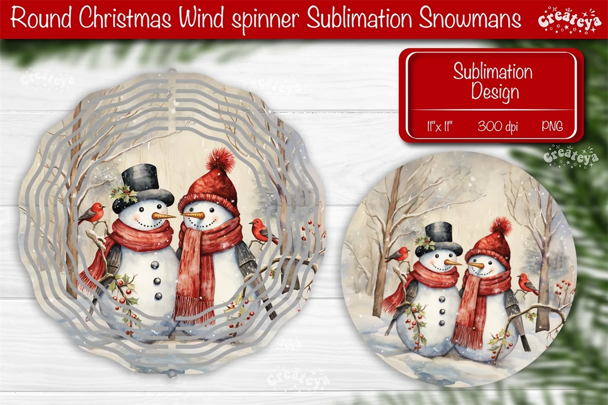 Round Christmas Wind Spinner design with a cute Snowman PNG. These Christmas dcor of wind spinners bring a touch of snow-filled charm and a warm, fuzzy feeling to your home decoration.