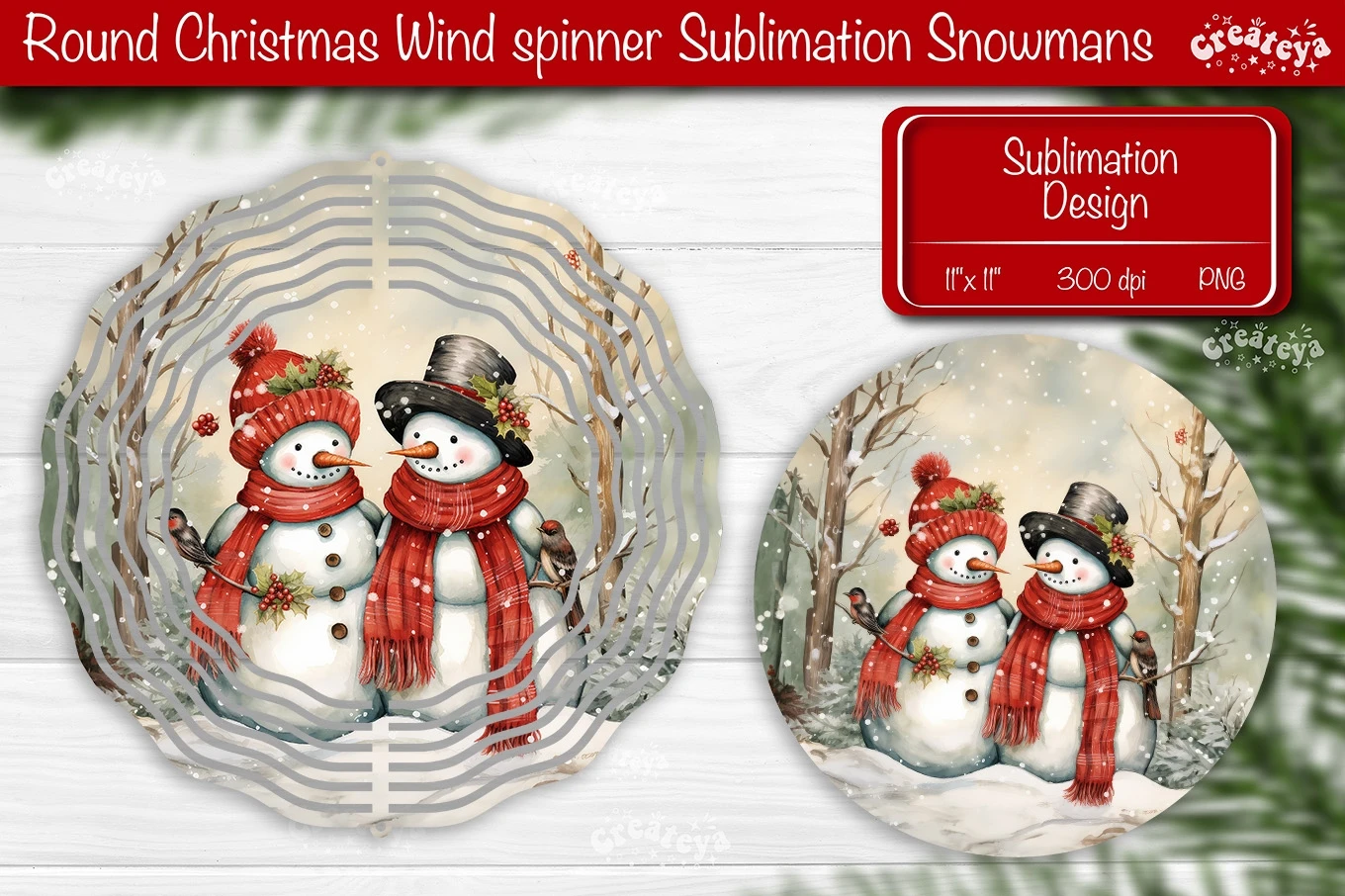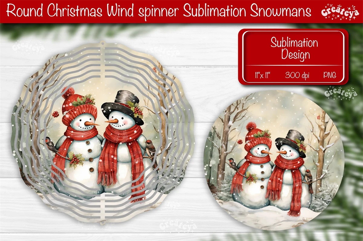 Round Christmas Wind Spinner design with a cute Snowman PNG. These Christmas dcor of wind spinners bring a touch of snow-filled charm and a warm, fuzzy feeling to your home decoration.