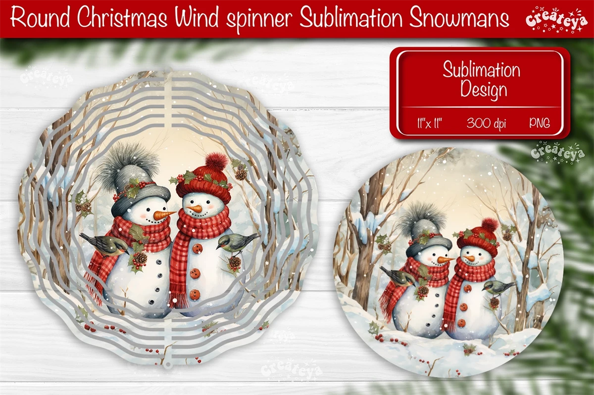Round Christmas Wind Spinner design with a cute Snowman PNG. These Christmas dcor of wind spinners bring a touch of snow-filled charm and a warm, fuzzy feeling to your home decoration.