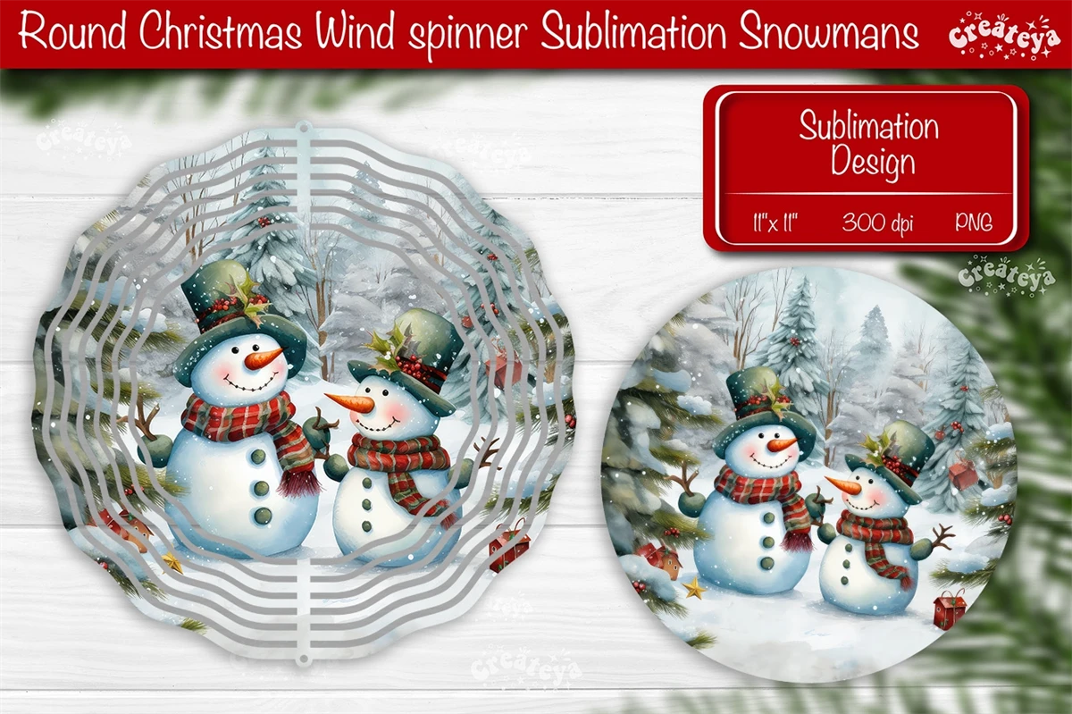 Round Christmas Wind Spinner design with a cute Snowman PNG. These Christmas dcor of wind spinners bring a touch of snow-filled charm and a warm, fuzzy feeling to your home decoration.