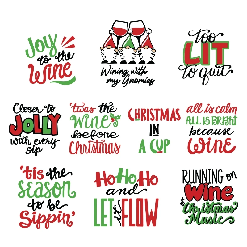 Christmas Wine Svg Bundle, Christmas Svg, Wine Svg