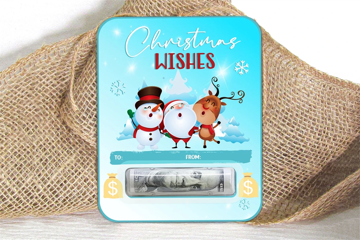 Christmas Wishes Money Card PNG, Snowman, Santa, Reindeer,