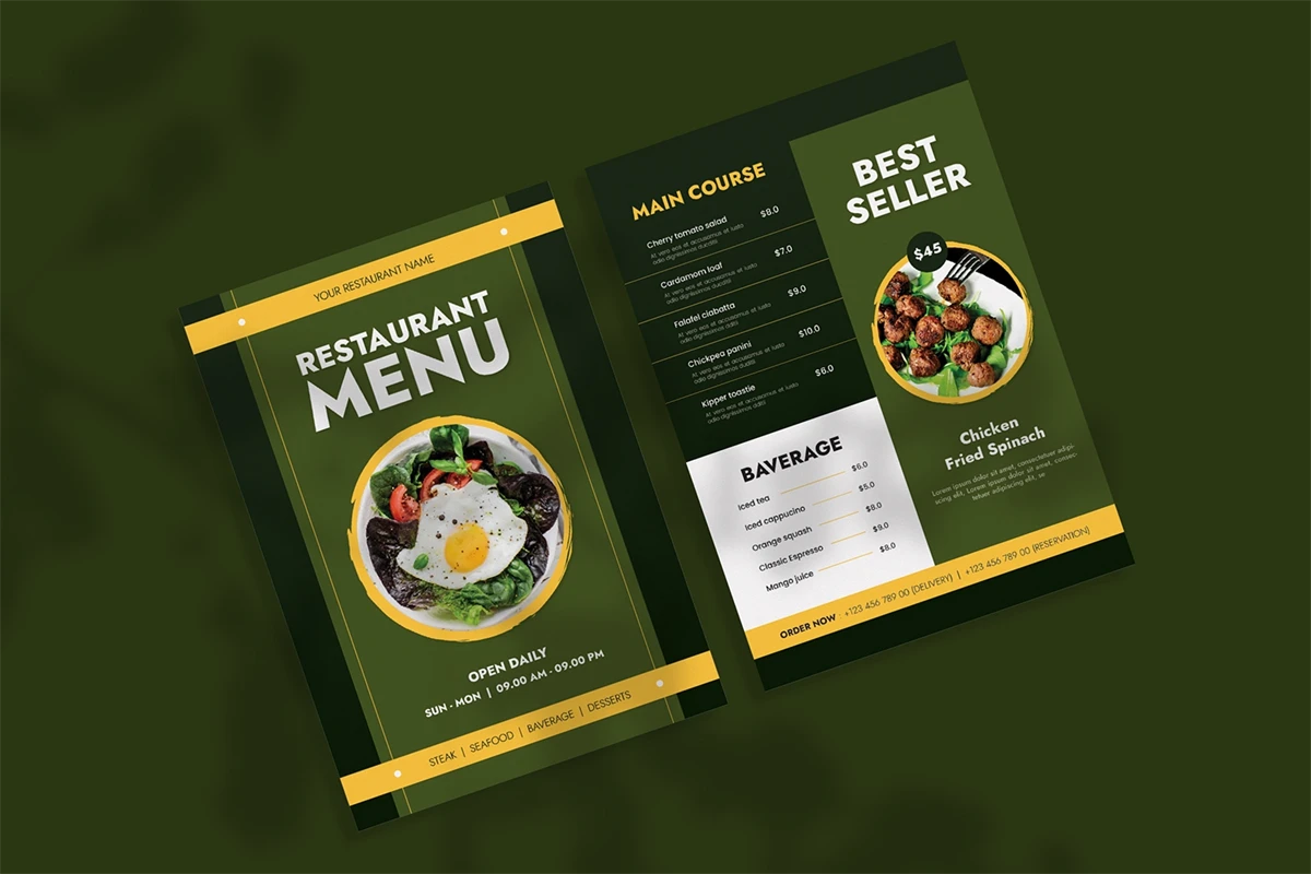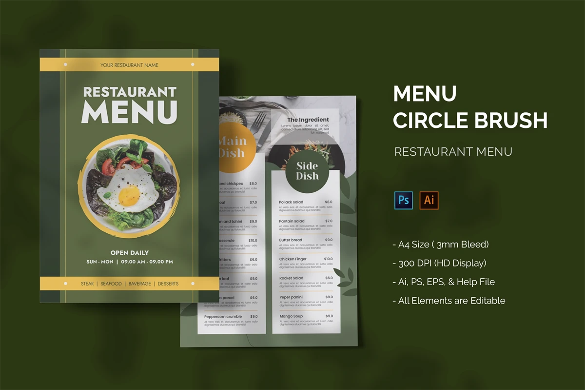Circle Brush - Restaurant Menu. This template is great for your business and will make your customers interested, elegant, and easily editable according to your needs, this restaurant menu is perfect for, promos, cafes, hotels, resort shops online. etc. I hope you enjoy this restaurant menu