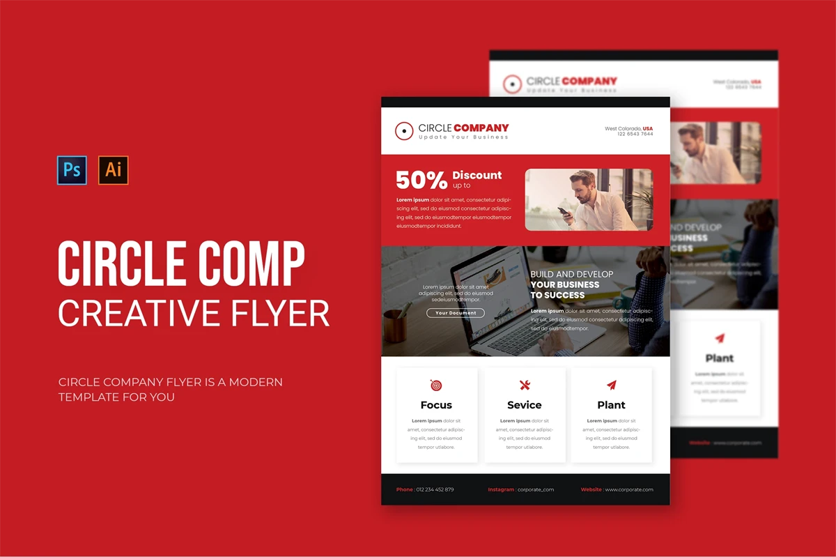 Circle Company - Flyer. This Flyer template is designed for your company's business needs. very clean and elegant, and also easily edited and adjusted to your liking