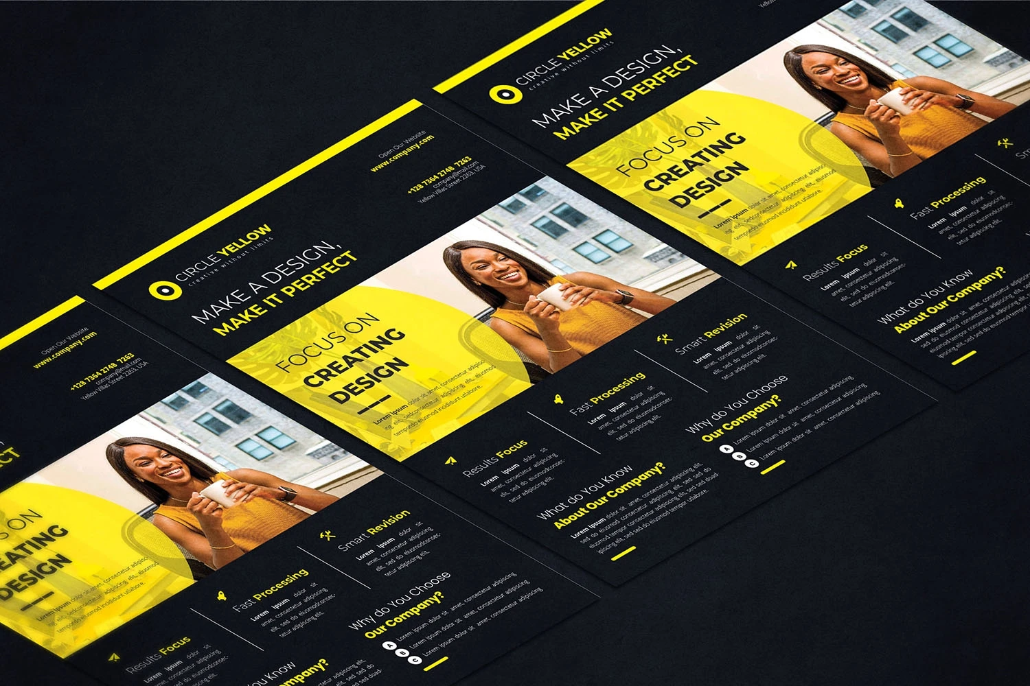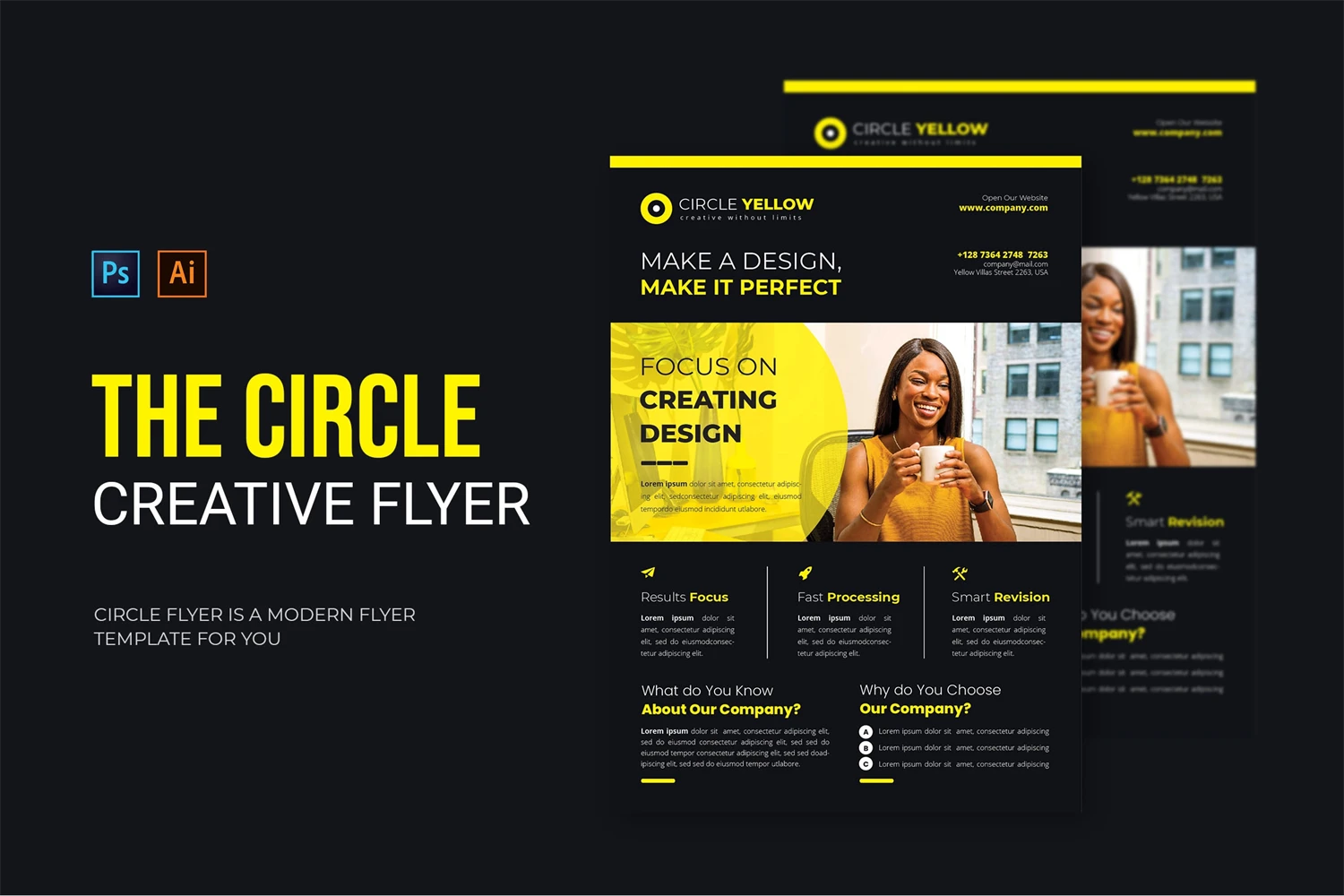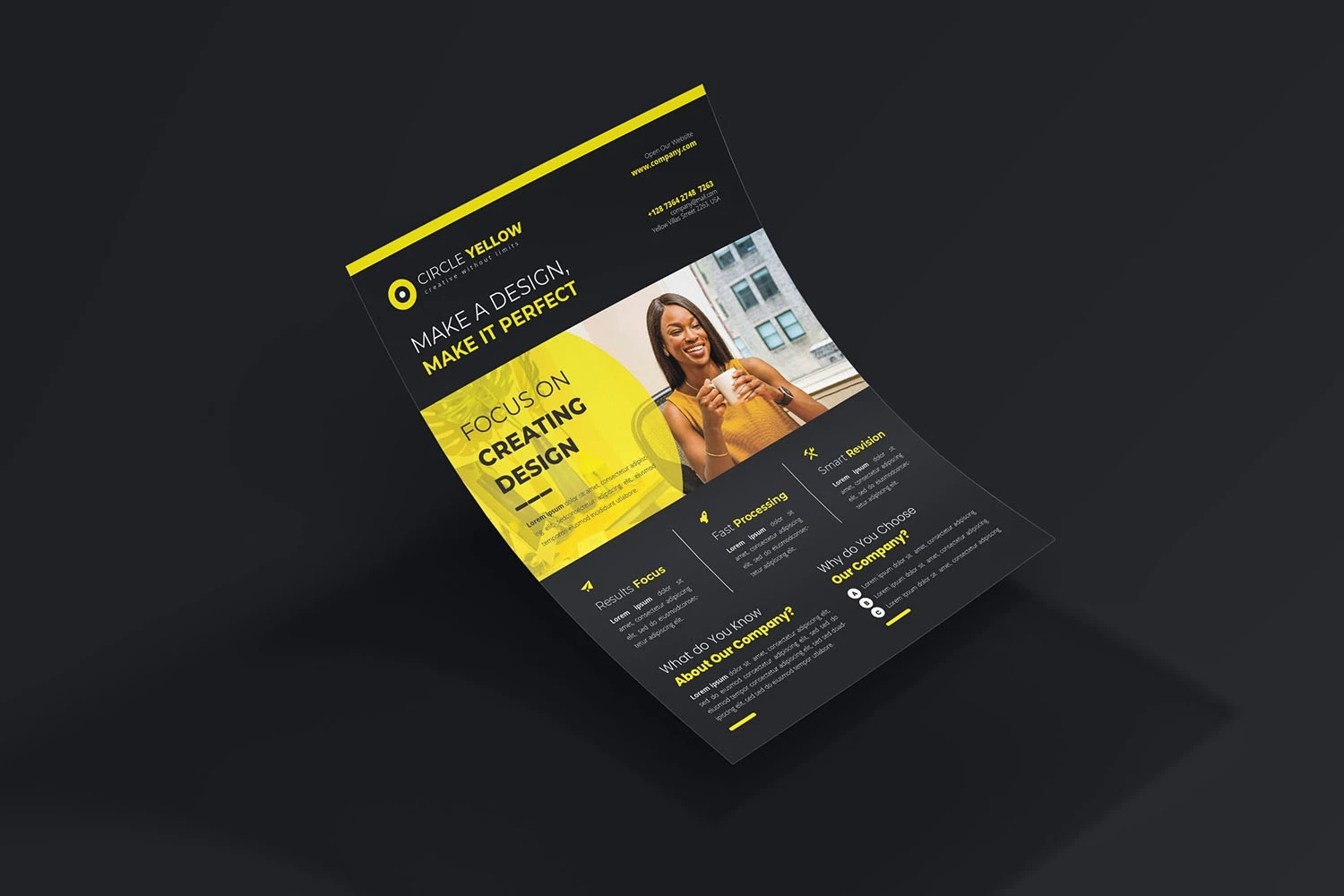 Circle Yellow - Flyer. This Flyer template is designed for your company's business needs. very clean and elegant, and also easily edited and adjusted to your liking