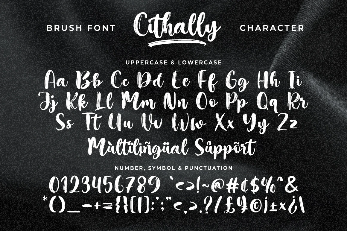 introducing a new font Cithally Handwritten Font is a handwritten font with a distinctive and sharp brush texture. Cithally was handwritten on paper with a coarse type brush, resulting in a consistent texture.