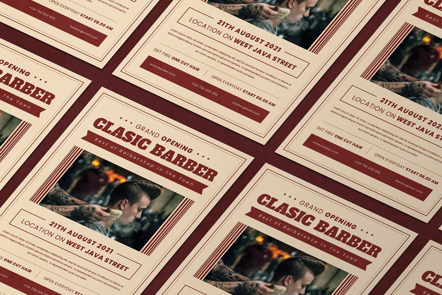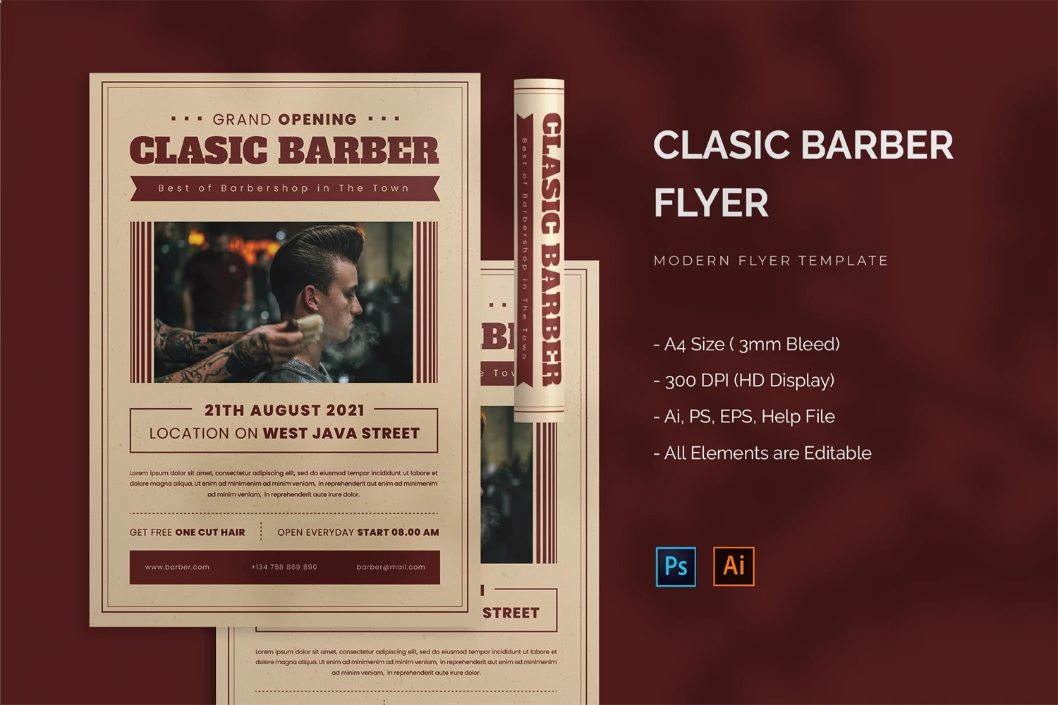 Clasic Barber - Flyer. This Flyer template is designed for your company's business needs. very clean and elegant, and also easily edited and adjusted to your liking