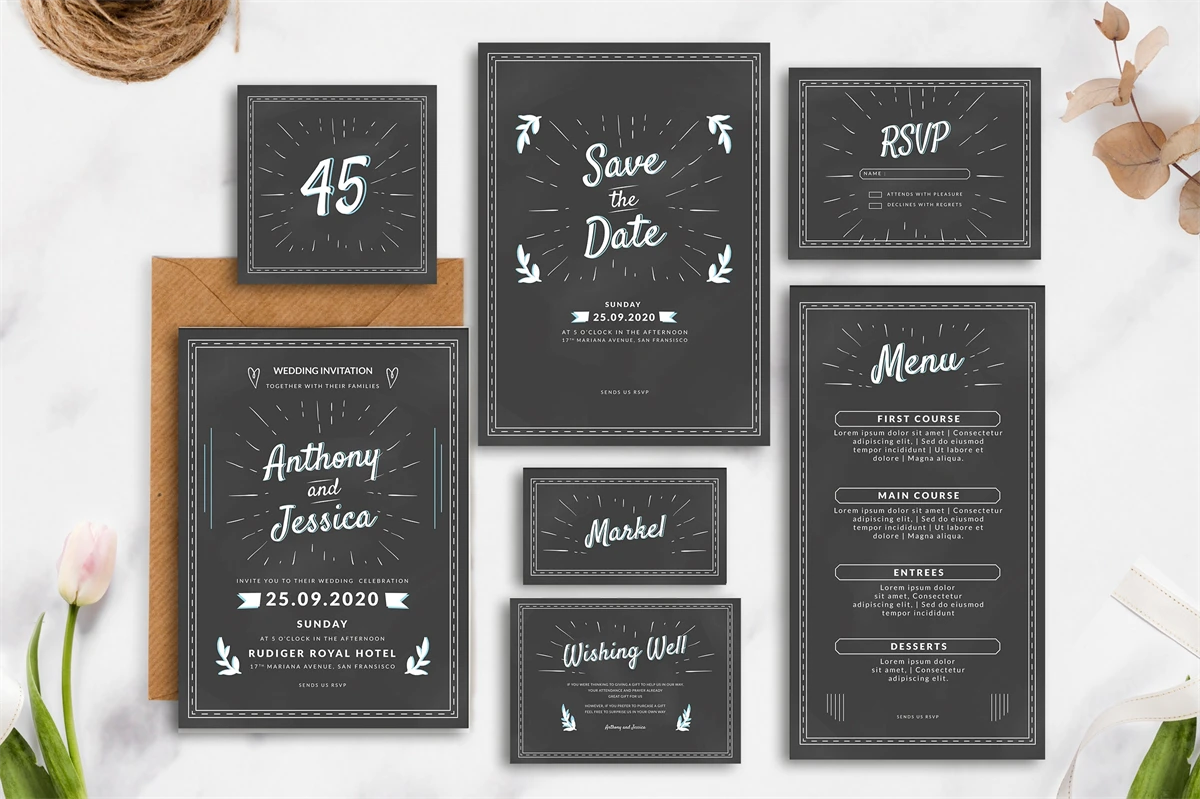 Classic Chalkboard - Wedding Invitation, is an invitation card leaflet, poster design, etc. Simple and very elegant You can easily edit & adjust each design because each layer such as text, images and shapes are well organized and highlighted.