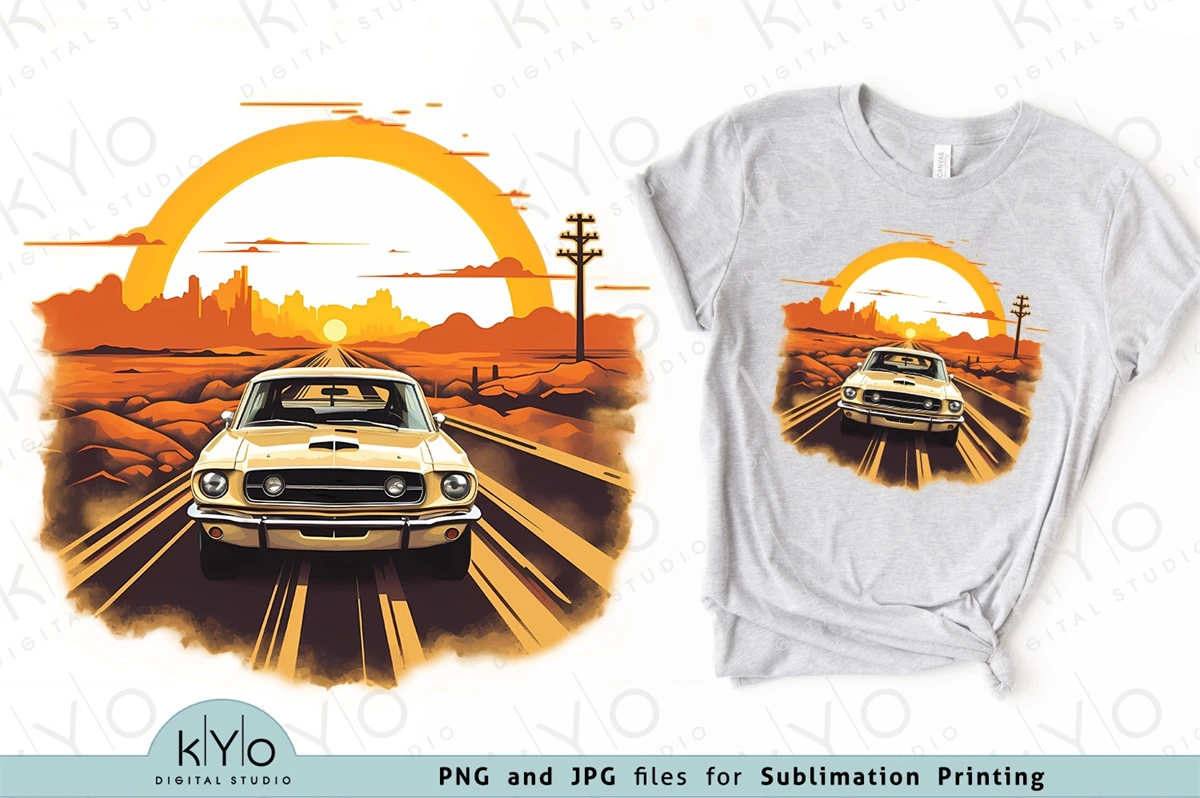 Everyone loves Classic Mustang, but this design gives extra Dreamy vibes with sunset on the road at the background. V12