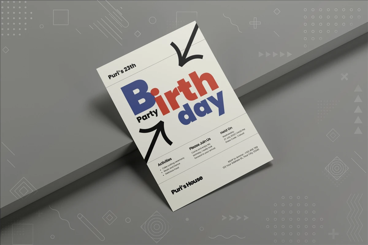 Birthday Invitation that is modern and appropriate for you or your company in providing luxury, among other things, can be used for individual or corporate needs. Remember to customize this template to fit the specific needs of your birthday celebration. Don't forget to add graphics and images that look good to make your invitation more interesting.