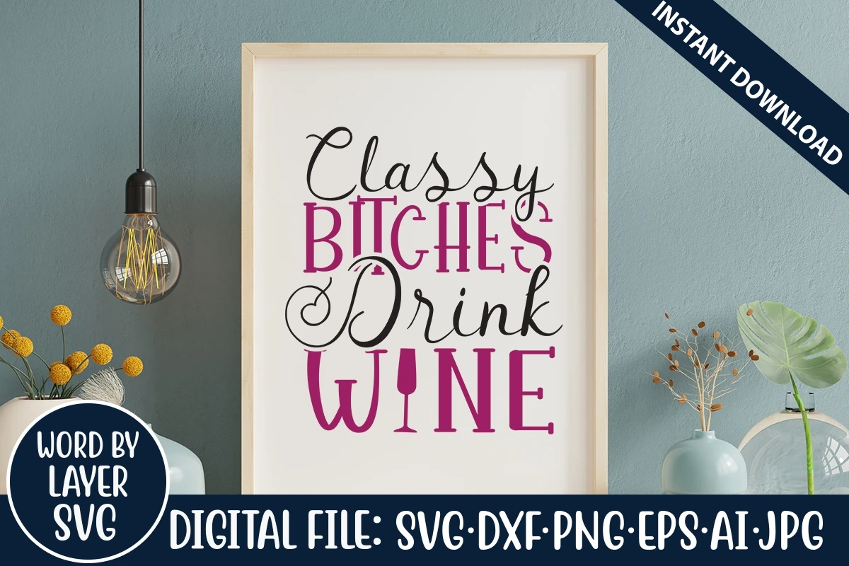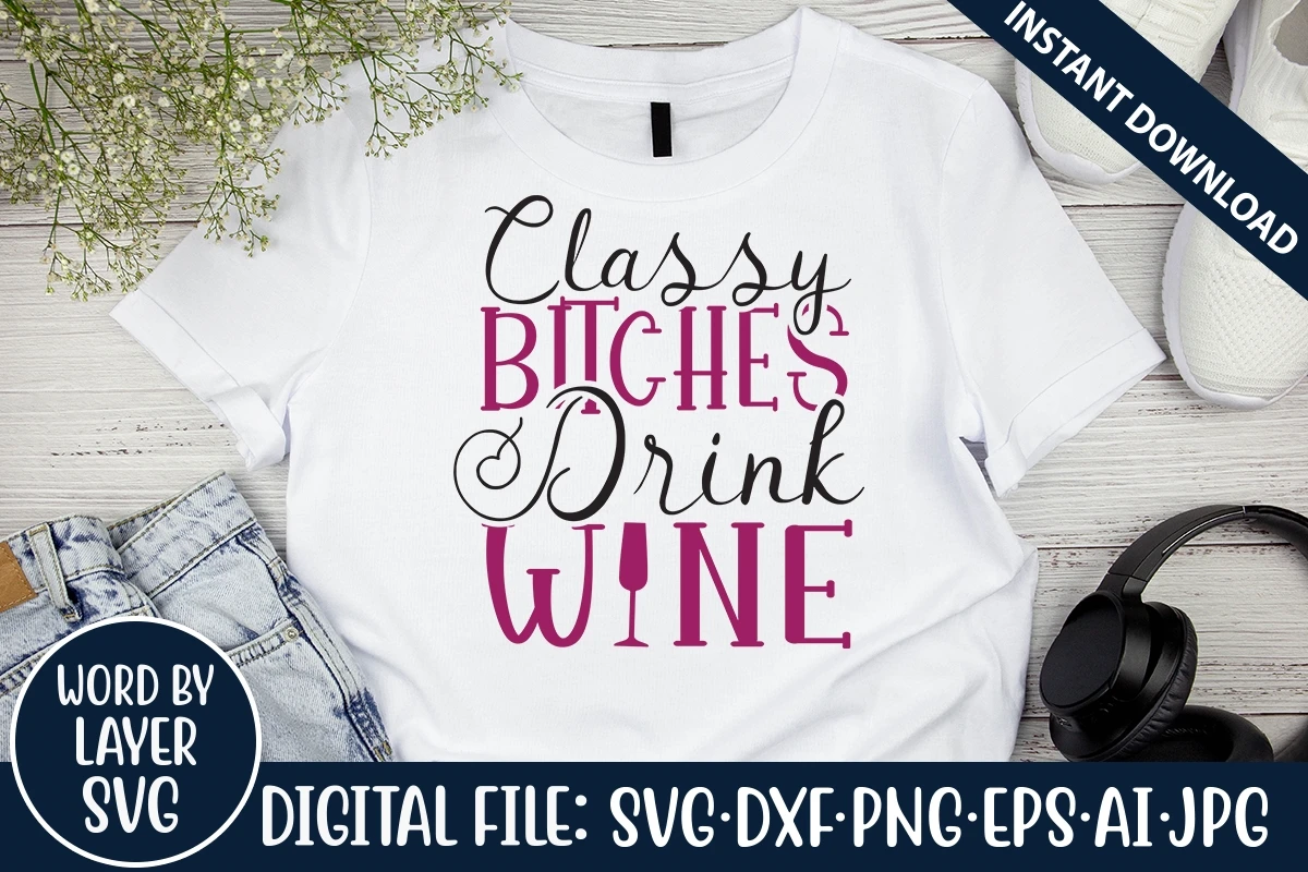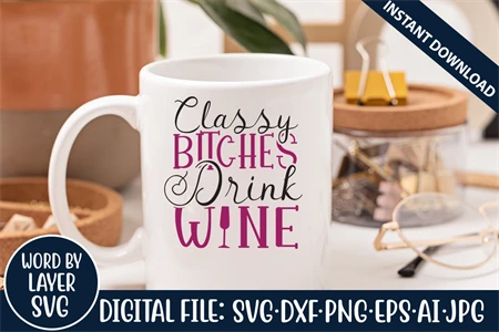 Classy Bitches Drink Wine SVG Design, SVG Cut Files