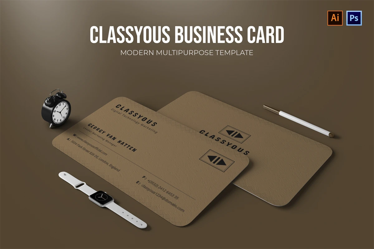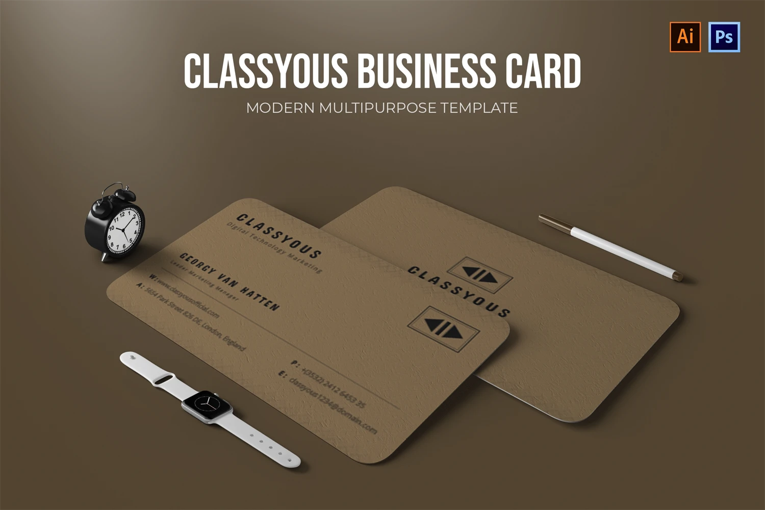 This Classyous - Business Card make your business cards look professional. You can use this business card for, identity, company business cards, Corporate Business, Creative, Blogs, Photographers, Artists, Designers, etc.