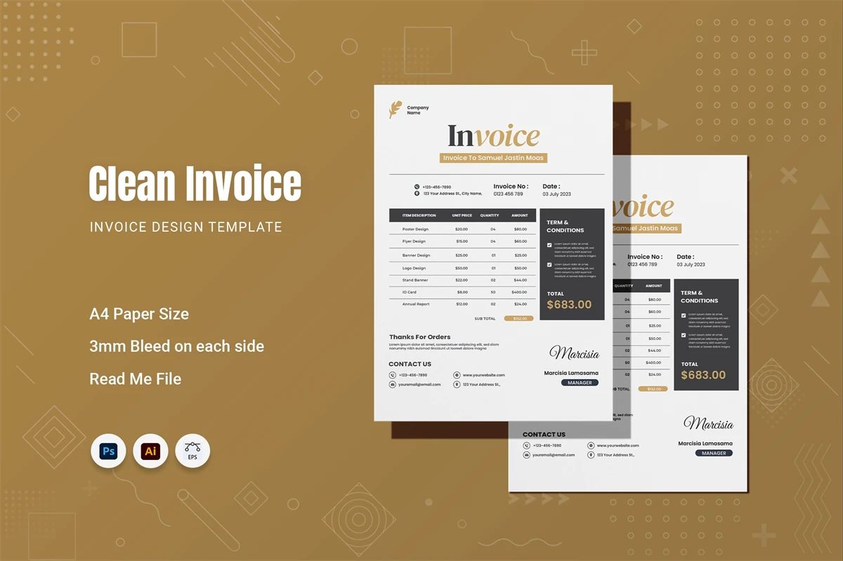 Professional invoice samples of the highest quality for any business or individual use. This invoice will help you in your business to save time, organize your product data, and identify your customers and items. It is designed for individual and corporate use. This printable stationery pack includes an invoice template designed to increase the credibility of your business. They're quick to customize, as all you've got to do is add your business logo to get a letterhead or envelope you can use immediately.