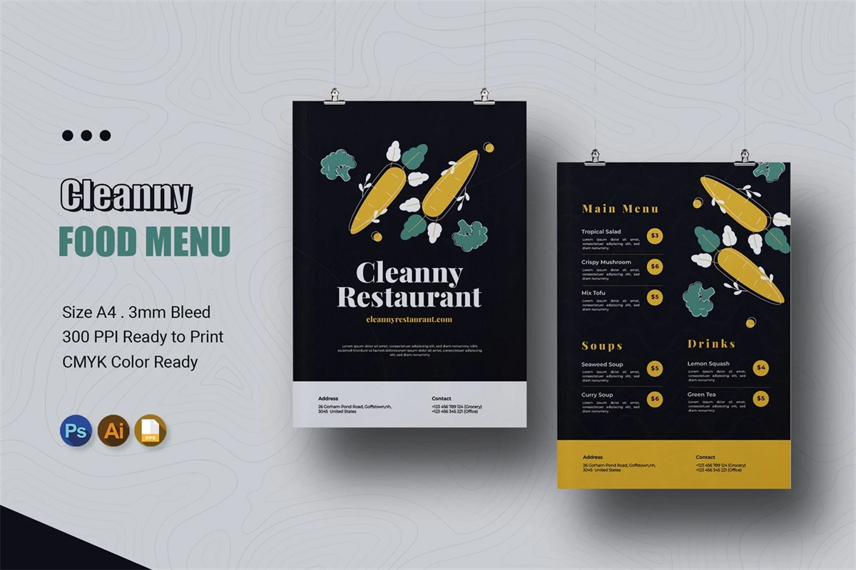 This Menu is great for displaying your restaurant menu in an eye pleasing way. Attracting customers with an easy-to-read restaurant menu certainly makes closing easier, right? easily editable according to your needs, this restaurant menu is perfect for promos, cafes, hotels, resort shops online etc.