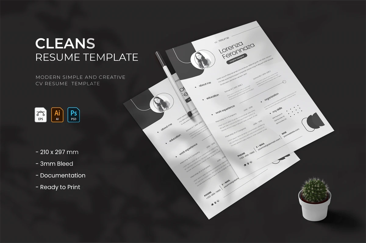 creative resume and cover letter template that will make your resume stand out from the hundreds of resumes employers get. It gives you the information you need, such as your name, contact information, social media links, education, experience, skills and interests. Also, it comes with three different color schemes.