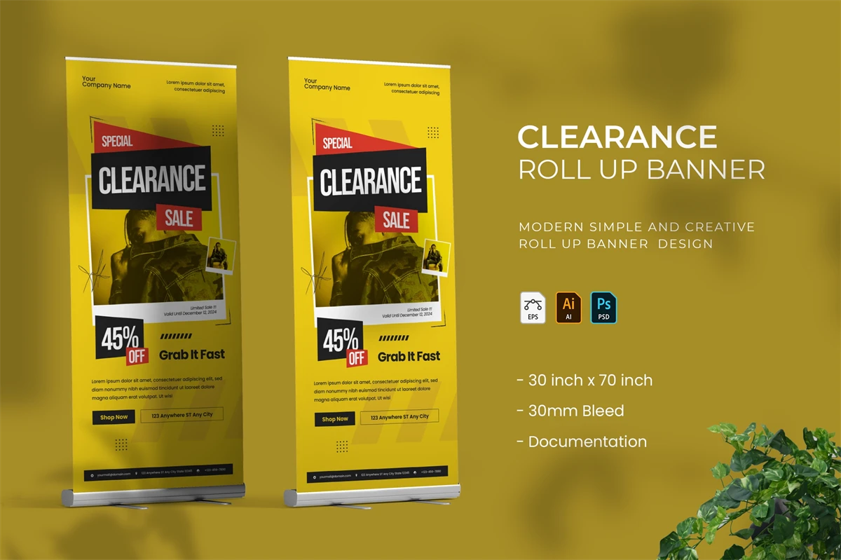 Roll-Up Banner Template: This is the best way to sell more furniture if you are selling it. With this beautiful roll-up banner, you can beat out your competitors and make your sales area look better. When you want to make an impression, its very important that your banner stand has the right design and information. Bring your project to the next level and see what can be done.