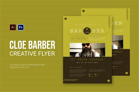 Cloe Barber - Flyer. This Flyer template is designed for your company's business needs. very clean and elegant, and also easily edited and adjusted to your liking