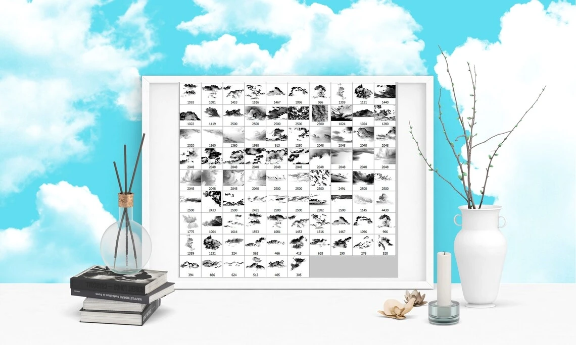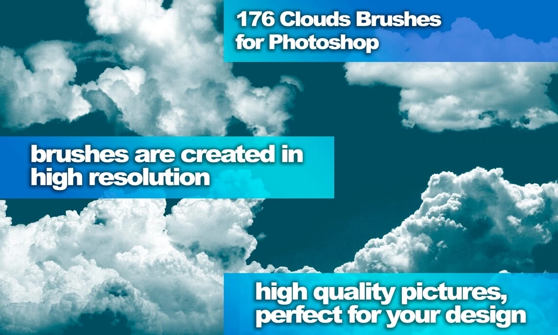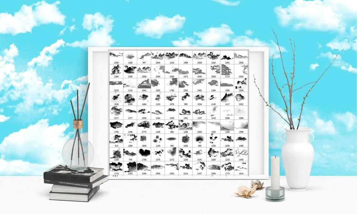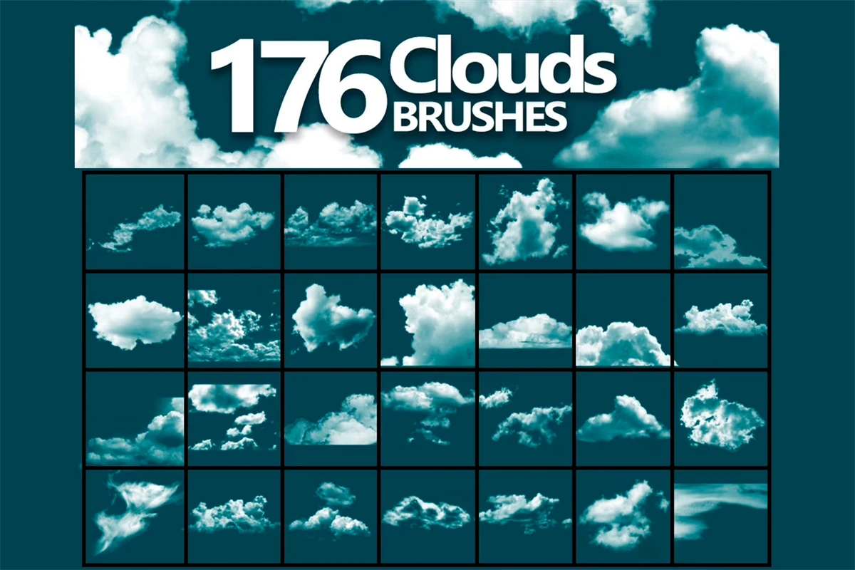 This set includes 176 excellent quality Photoshop themed brushes that you can use in your design ideas. This set includes images and elements for drawing and editing: cloud, sky, digital sky, realistic sky