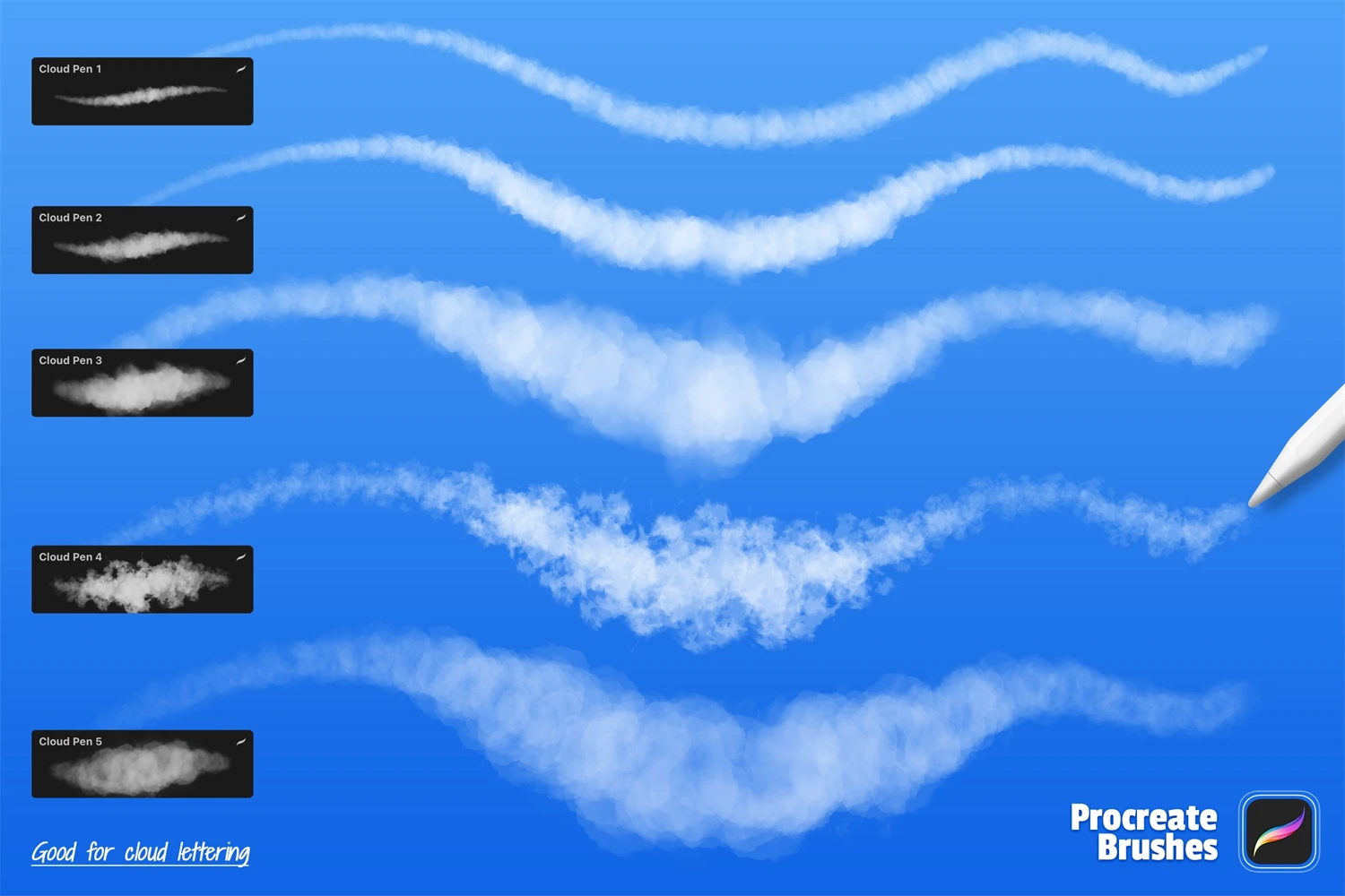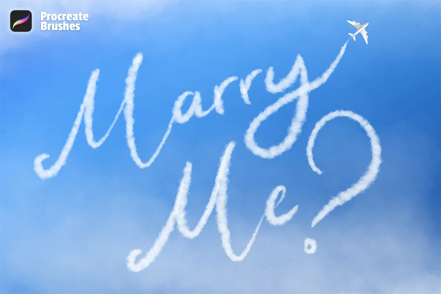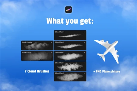 Make your text written in the sky with airplane! A declaration of love or congratulations. Romantic? YES! Get 7 brushes for procreate drawing. Realistic cloud effect. Easy to add clouds to your photos and artworks. Just brush over and get realistic cloud effect. Brushes with pen pressure and tilt sensitivity.
